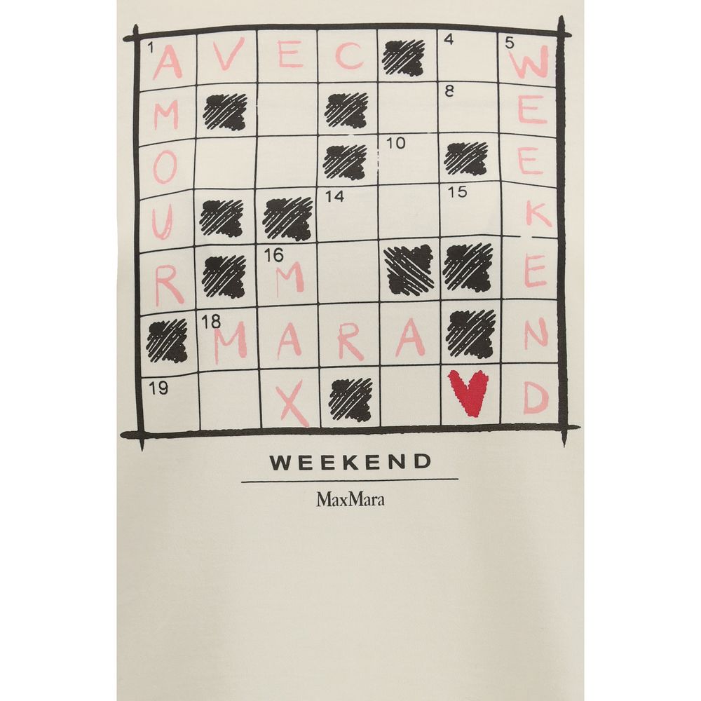 The Clown cotton T-shirt by Weekend Max Mara is crafted from fine stretch organic cotton jersey, grown without harmful chemicals or synthetic fertilizers. Designed with a straight cut for ease of movement, it features a classic crew neck, flat seams for enhanced comfort, and a printed motif for a touch of effortless charm, combining sustainability with everyday elegance.