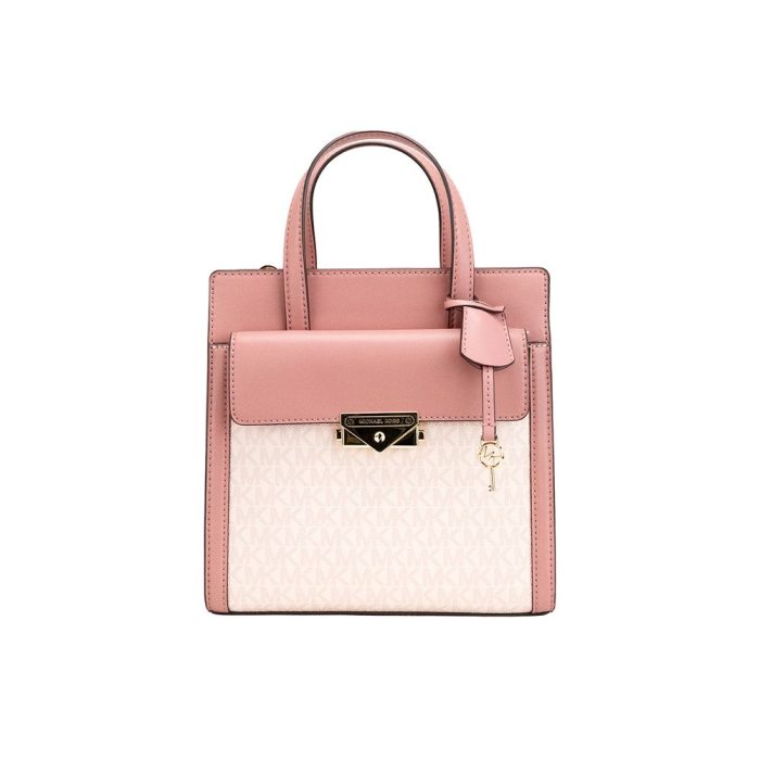 Style: Michael Kors Cece Small Dark Powder Blush North South Flap Tote Crossbody Bag Material: Signature PVC Features: Inner Pockets Lined Adjustable/Detachable Crossbody Strap Measures: 22.86 cm L x 22.86 cm H x 10.16 cm D Size on Tag: One Size