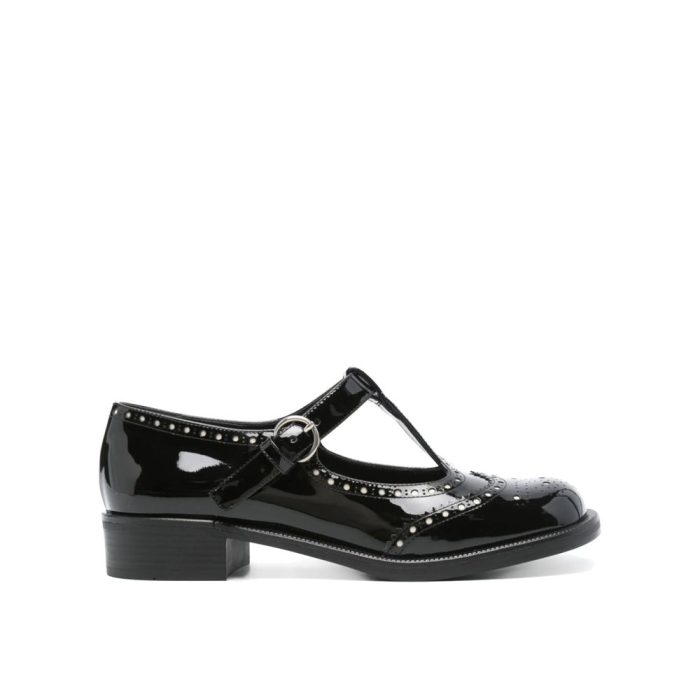 – Composition: 100% calf leather – Inner: Leather – Insole: Leather – Sole: Leather – Round toe – Patent effect – Perforated detail – Cut-out detail – Adjustable buckle closure – Branded insole – Heel 3 cm – Made in Italy – Gender: WOMEN –
