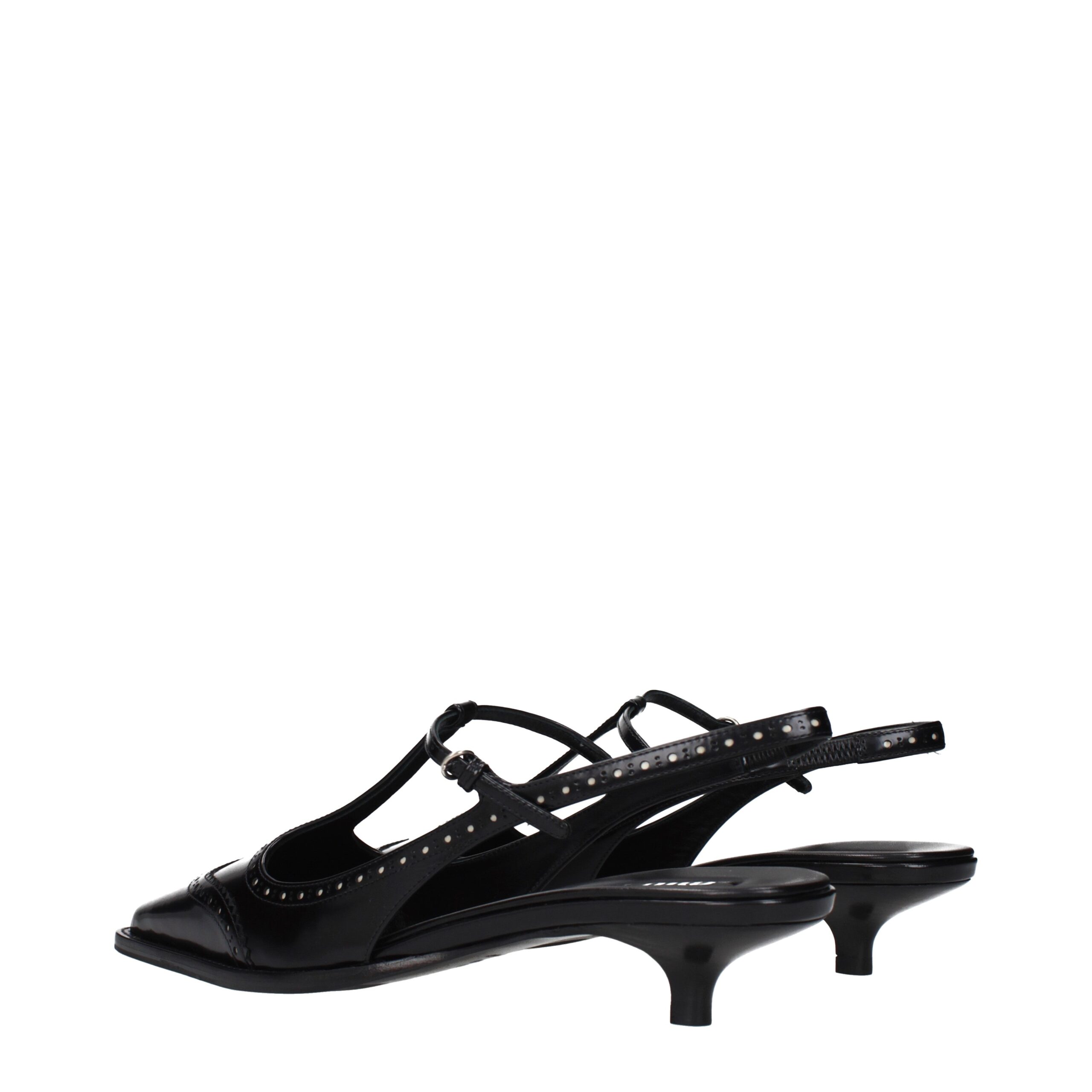 The product with MPN 5I309E055035F057Z and code F85403 leather in black is a sandals designed by Miu Miu. It has features like vintage effect.