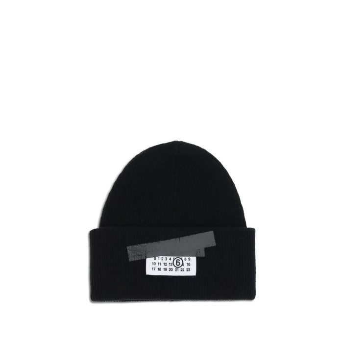 The MM6 beanie Hat stands out for its modern and dynamic ribbed design. Embellished with a logo patch and a ribbon print, this accessory combines originality and urban style, perfect for those who want to add a distinctive touch to their casual looks.