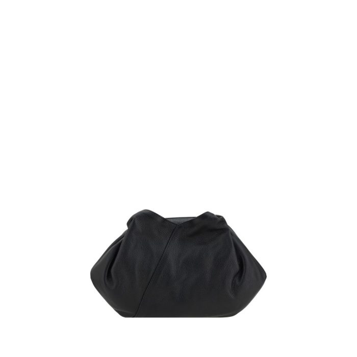 The leather Handbag by MM6 features a draped grained leather design that gives it a unique, structured look. The tubular top handle adds a touch of elegance, while the strap and snap-button closure provides security. Inside, the bag offers a single compartment, combining style and functionality.