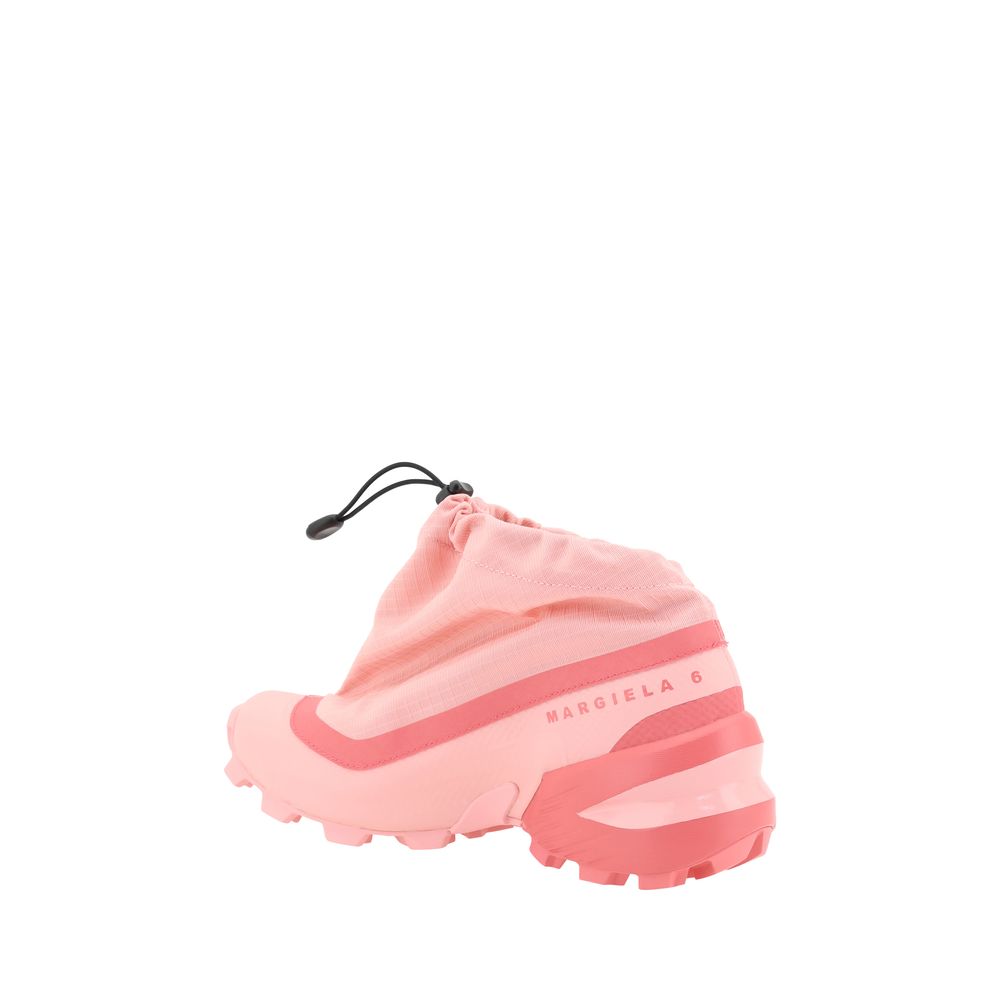 Sneakers by MM6 X Salomon, front closure by elasticated drawstring toggle, elongated toe on front, iconic Salomon monogram printed on side panel, iconic MM6 monogram in contrast on inner panel, textured non-slip sole.