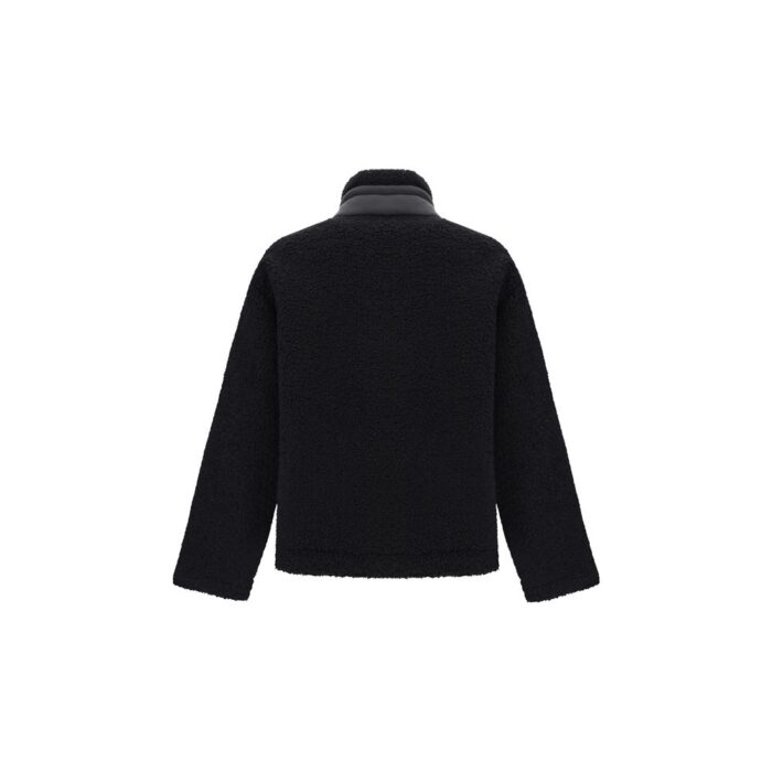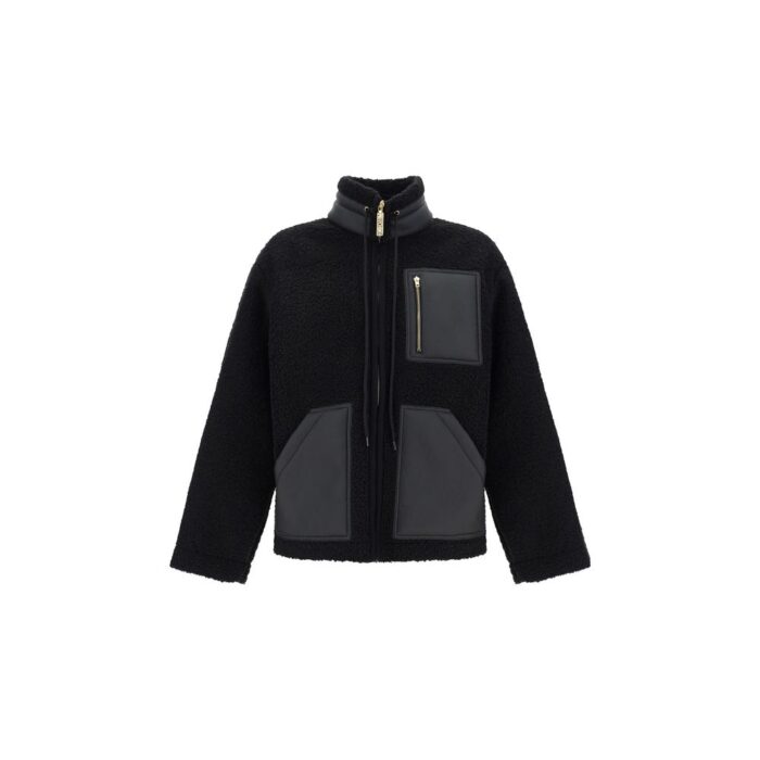 Jacket by Moschino, high collar, zipper front closure, two welt patch pockets on front, one slit pocket with zipper patch on front panel, shearling effect design, regular fit.