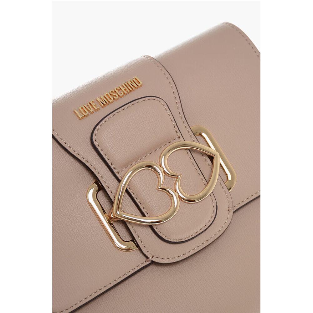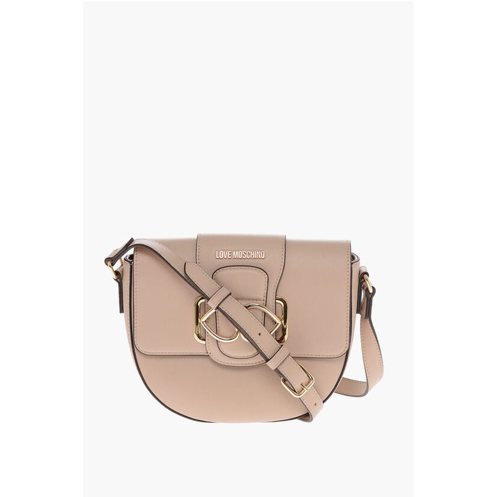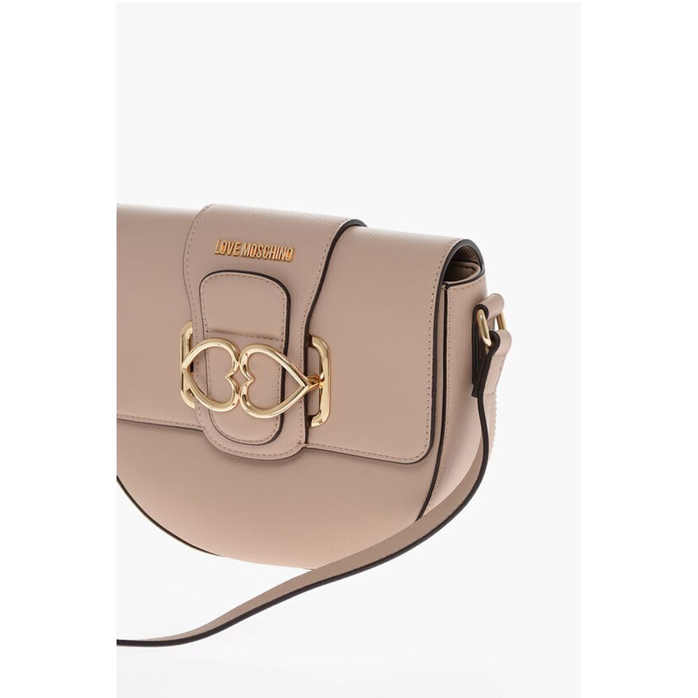 Moschino LOVE Faux Leather Crossbody Bag with Double Metal Heart