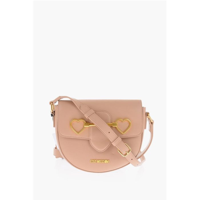 Moschino LOVE Faux Leather Shoulder Bag with Golden Heart Clamp