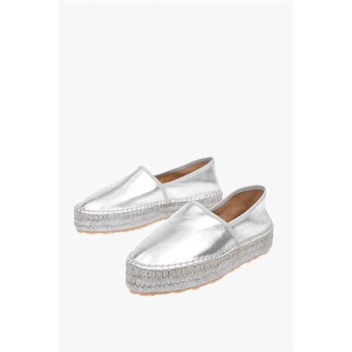 Moschino LOVE Laminated Leather Platform Espadrilles with Logo Engrav
