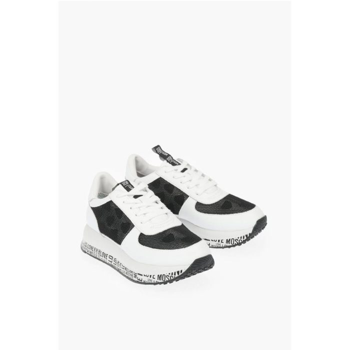 Moschino LOVE leather sneakers with mesh details and all over logo so
