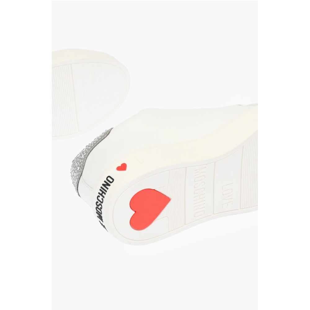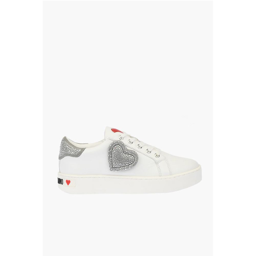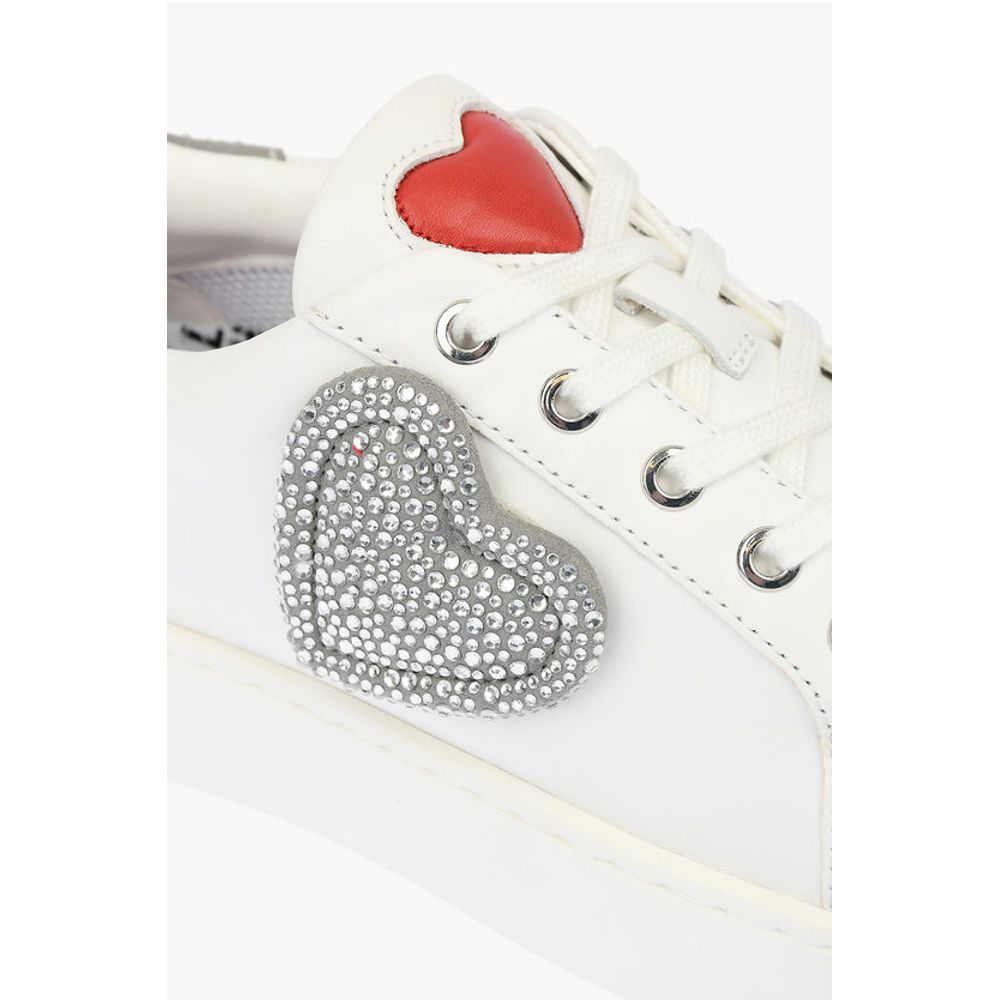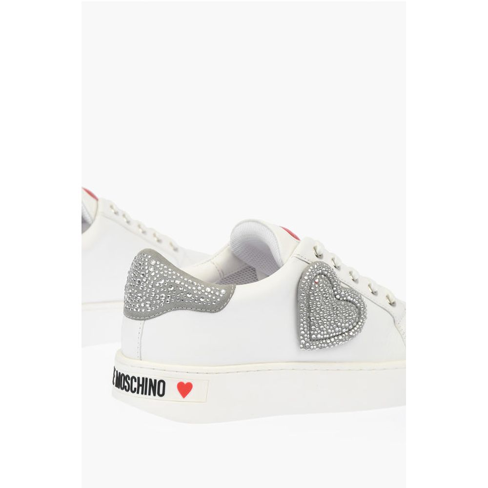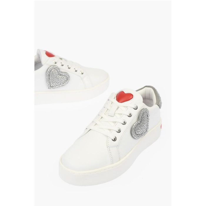 Moschino LOVE Low Top Leather Sneakers with Rhinestoned Details