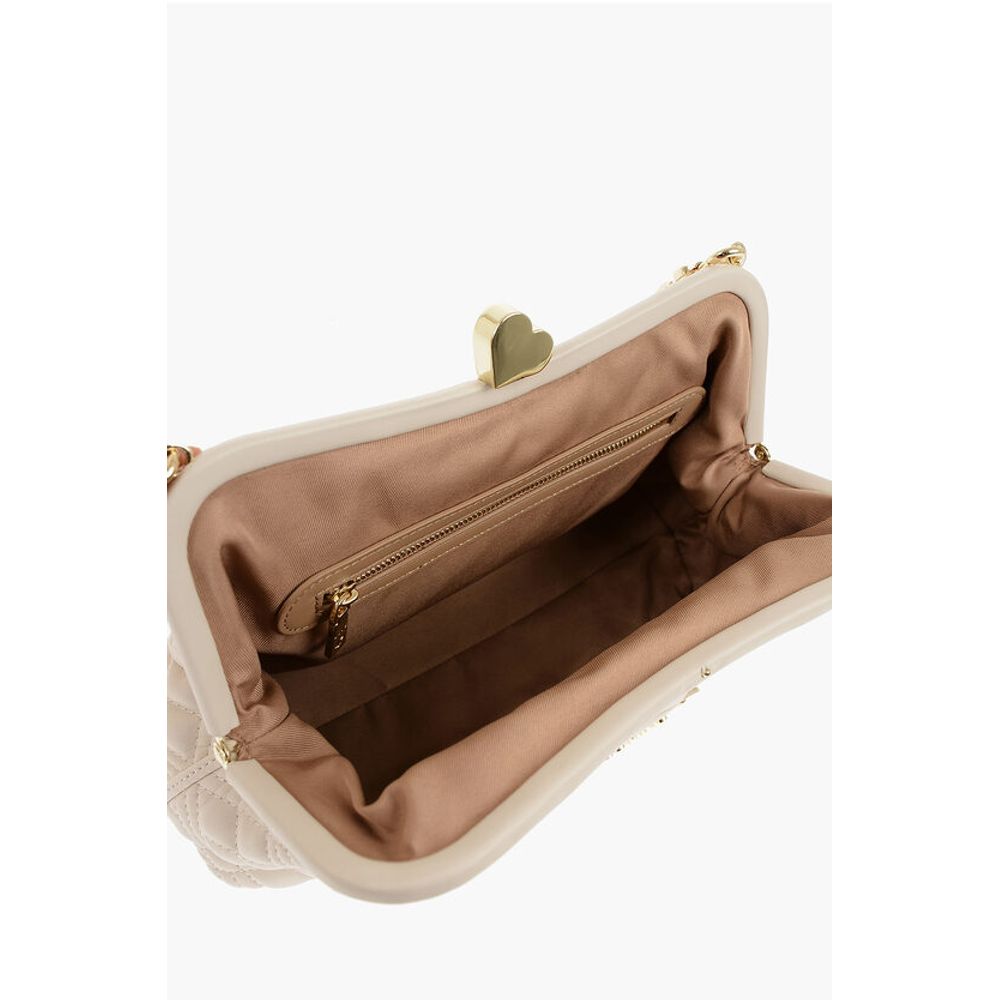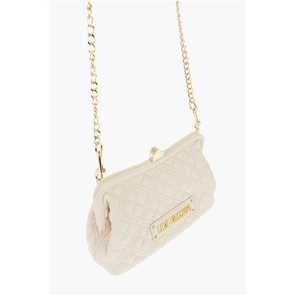 Moschino LOVE Quilted Faux Leather Bag with Golden Chain and Heart De