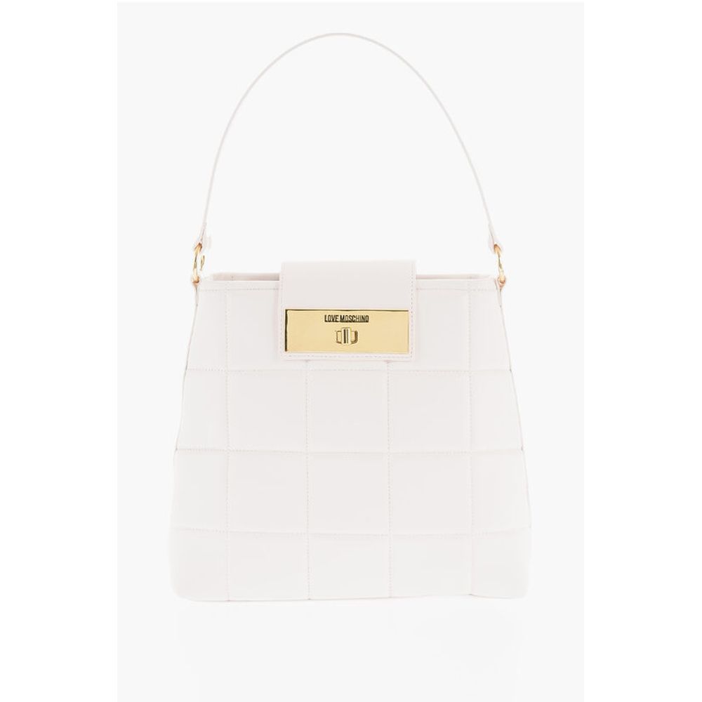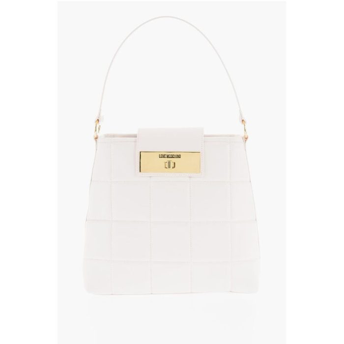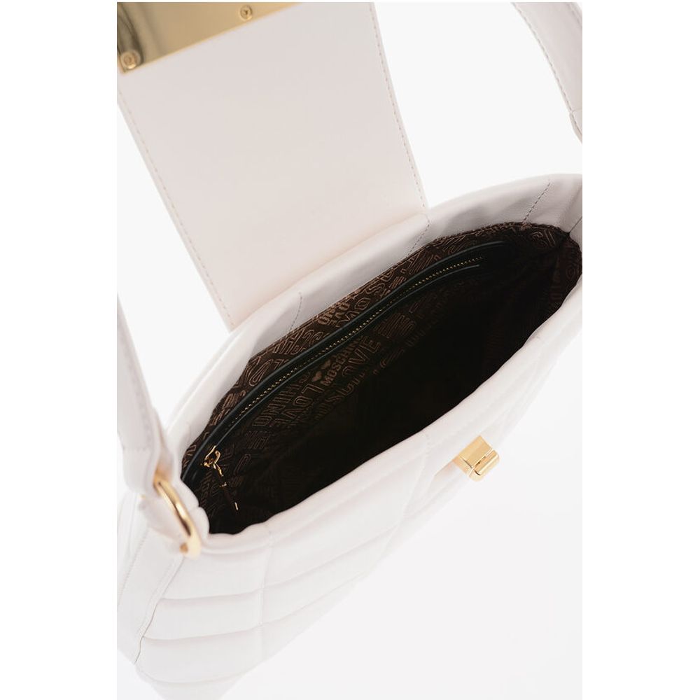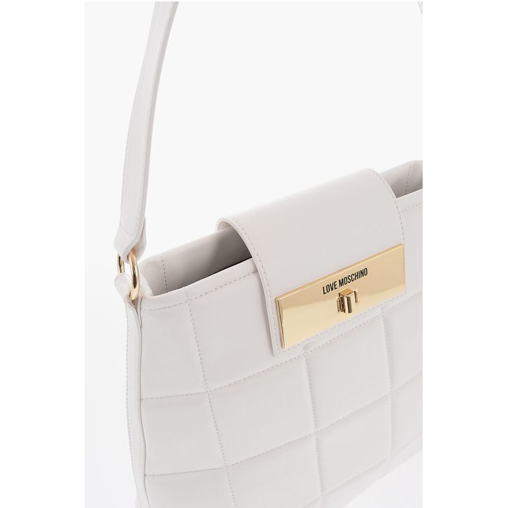 Moschino LOVE Quilted Faux Leather Shoulder Bag with Turn Lock Closur