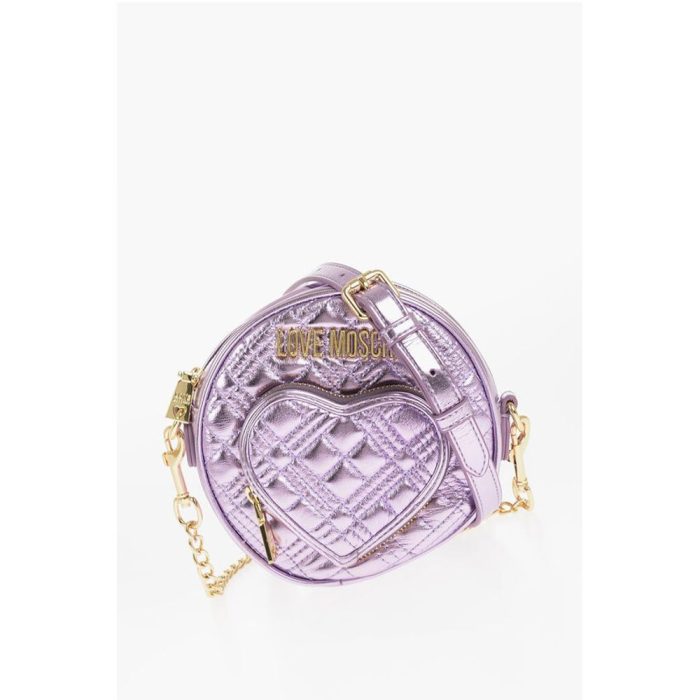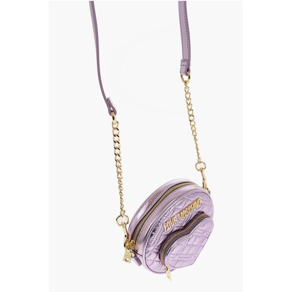 Moschino LOVE Quilted Metallic Faux Leather Bag with Heart-Shaped Poc