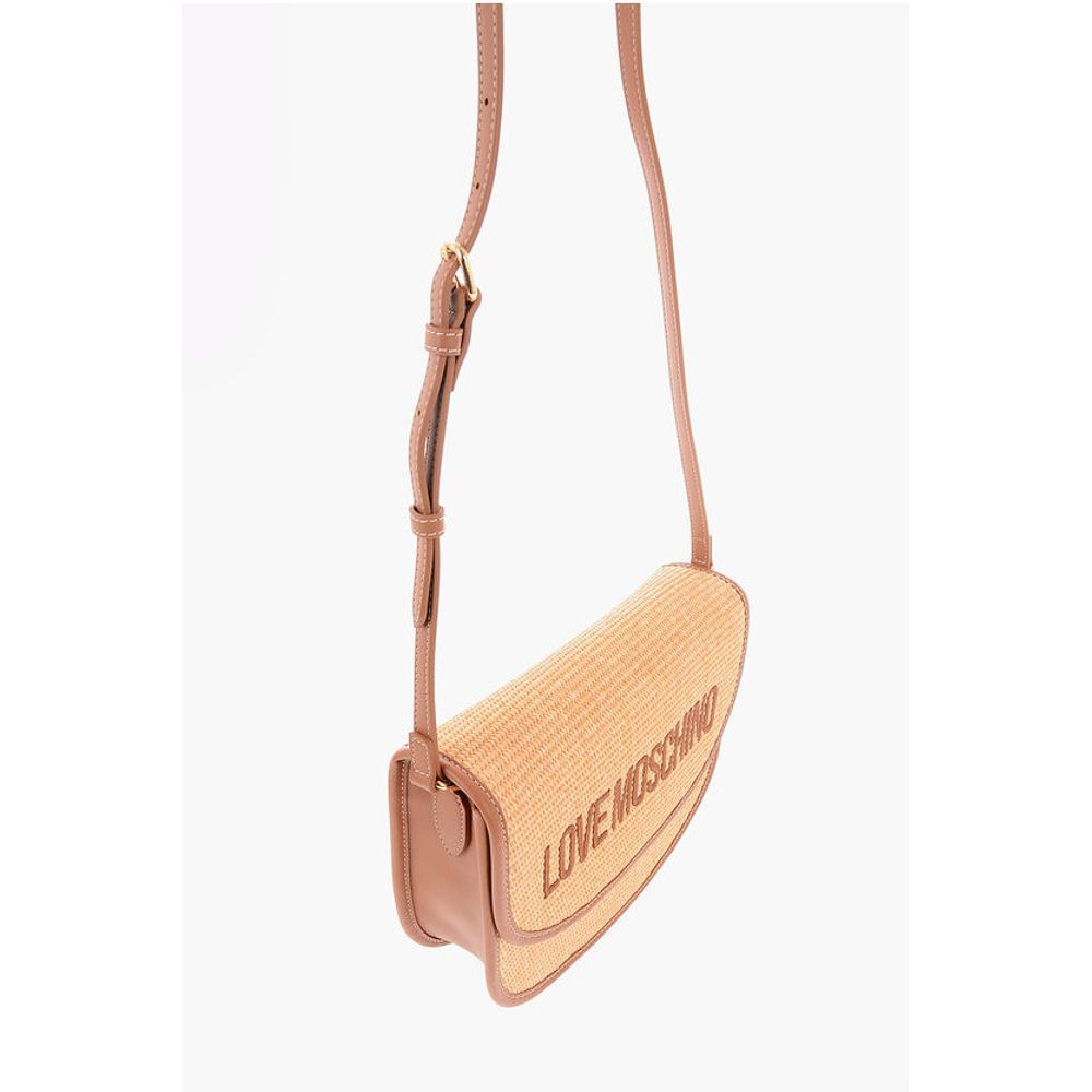 Moschino LOVE Rafia Crossbody Bag With Faux Leather Trimmings