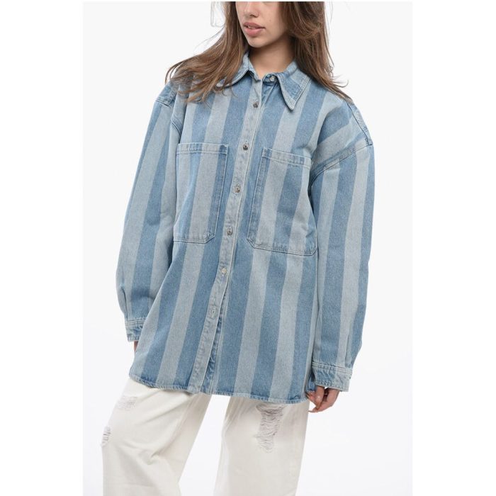 Be the first to review “Nanushka Awning Striped Denim BEAUX Overshirt with Logo Buttons”