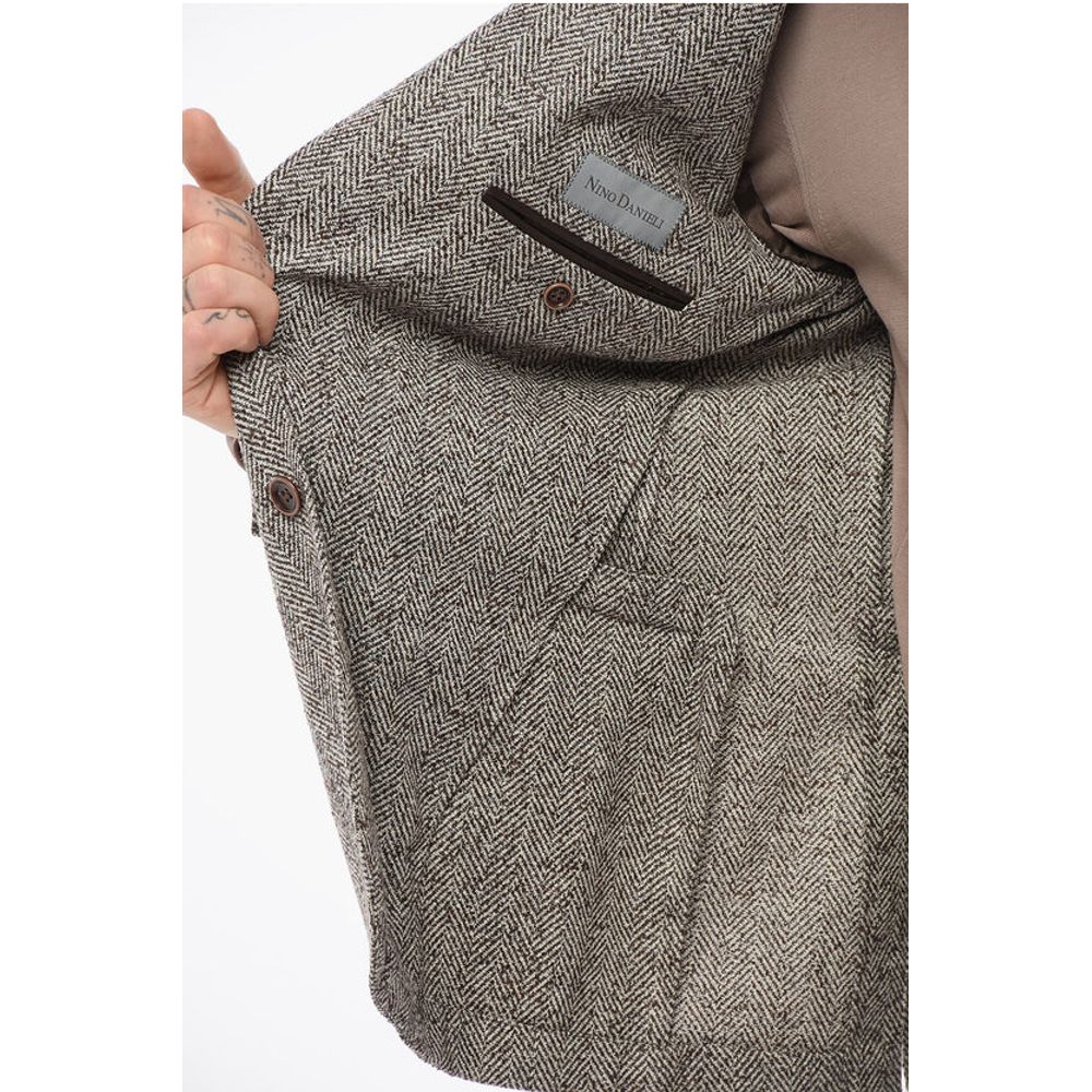 Nino Danieli Wool Blend Single Breasted Blazer Herringbone Motif WithFlap
