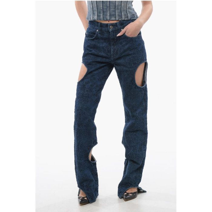 Off-White All-Over Embroidered METEOR Dark Washed Denims 22cm