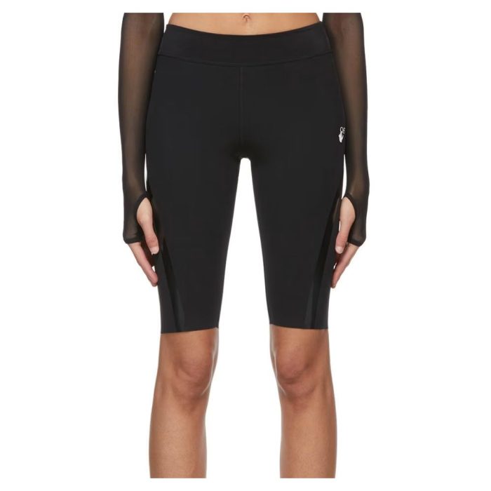Off-White fitted nylon bike shorts with logo stamp on front and shiny side stripes