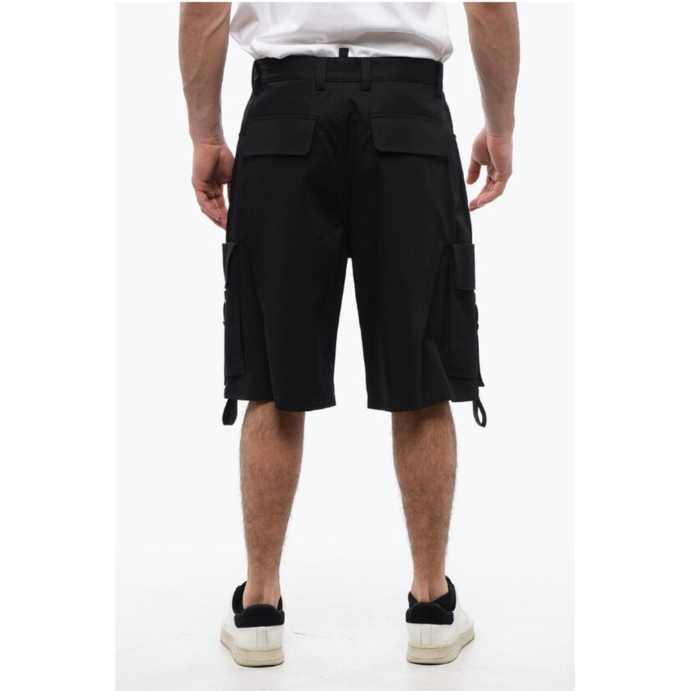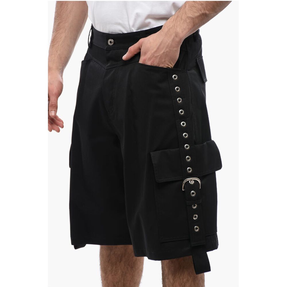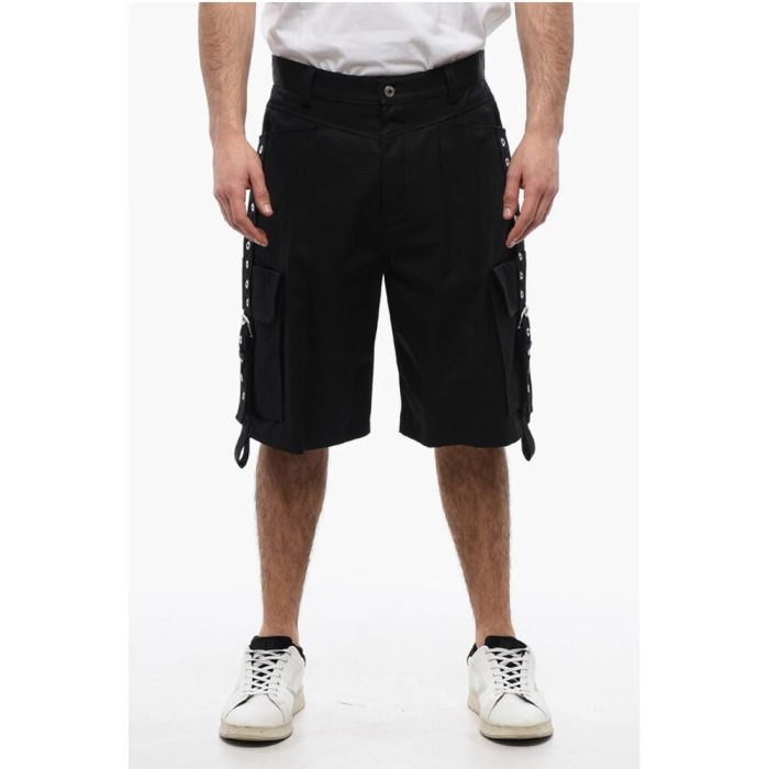 Off-White Cotton Cargo Shorts with Eyelets and Buckles