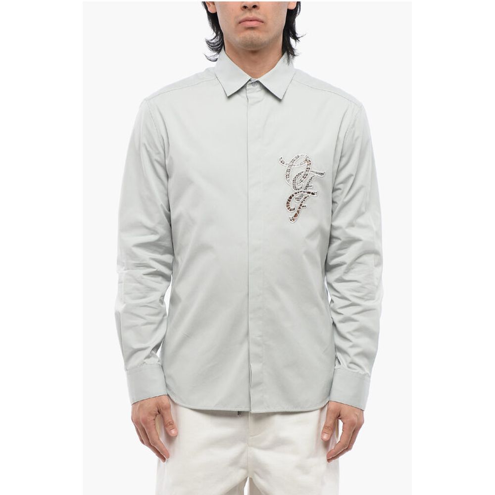 Off-White Cotton NATLOVER Shirt with Openwork Embroidery
