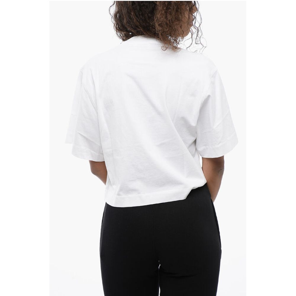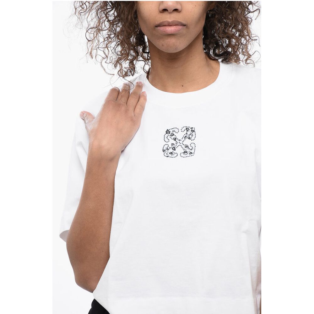 Be the first to review “Off-White Crew-neck Crop T-Shirt with Rhinestones Embellished Logo”