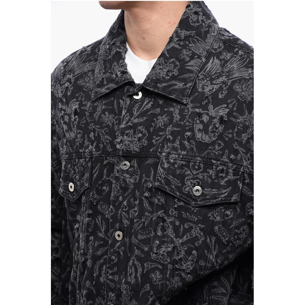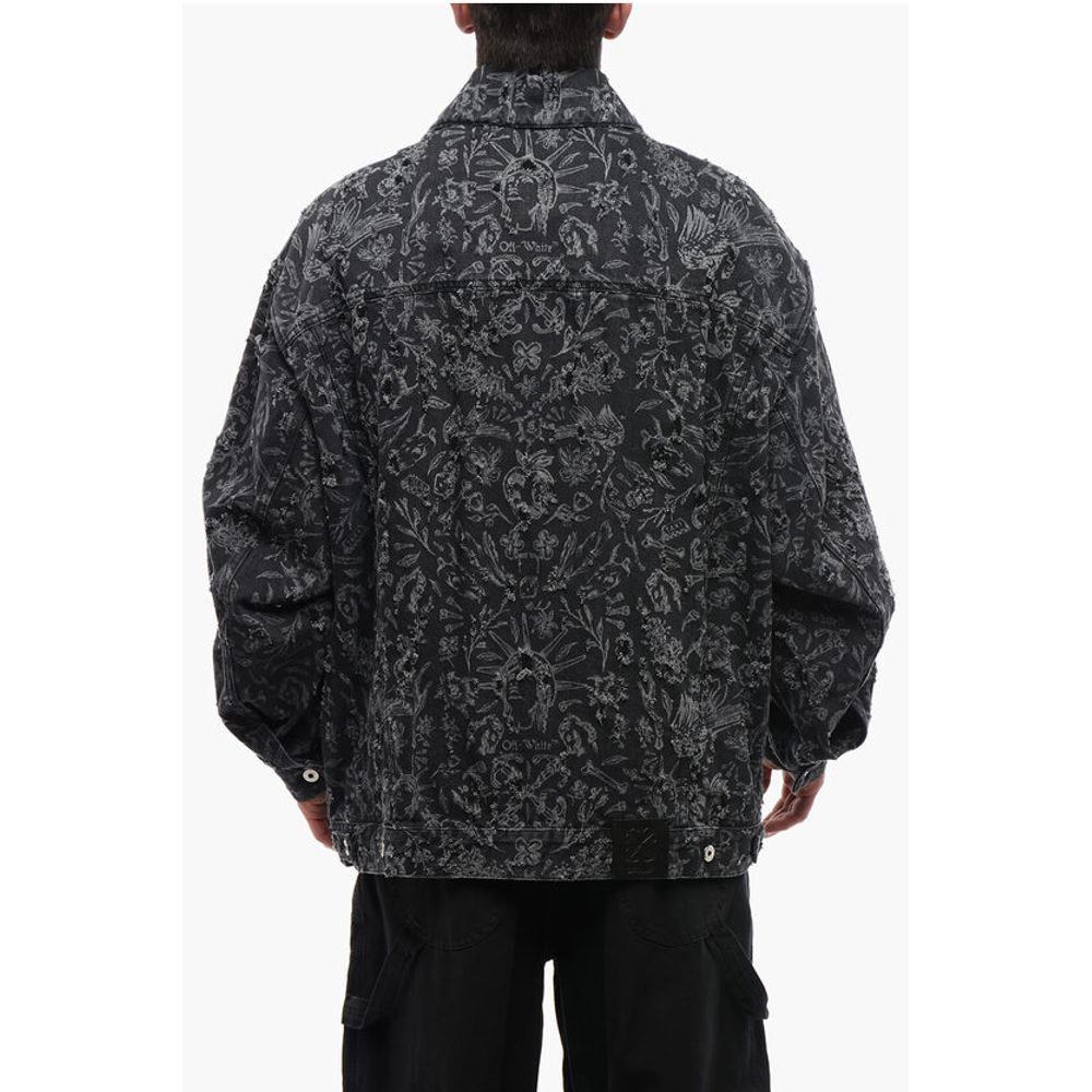 Off-White Distressed Design TATTOO LASER Denim Jacket