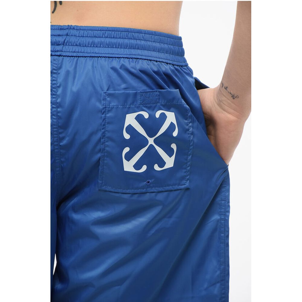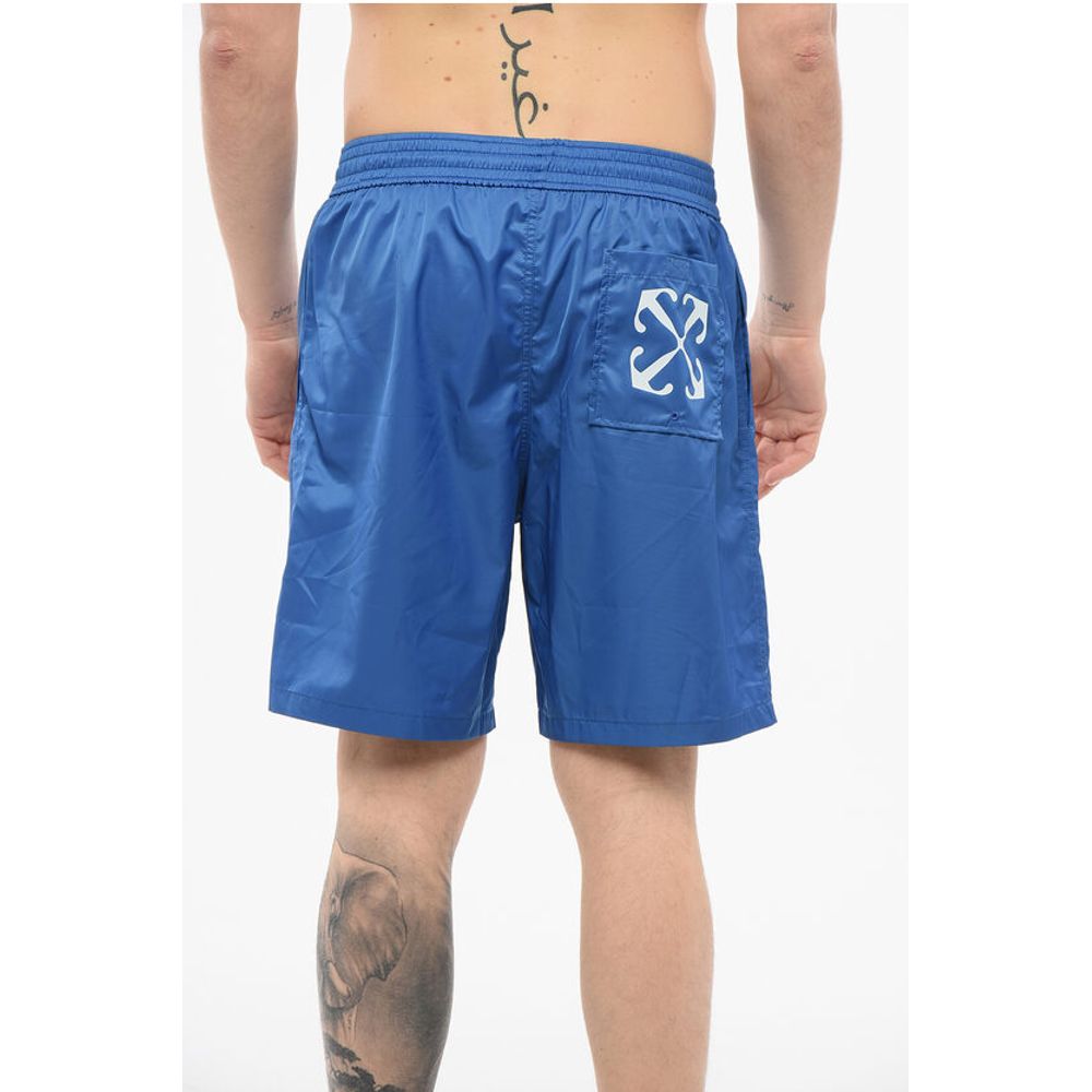Off-White Solid Color ARROW SURFER Swim Shorts with Printed Logo
