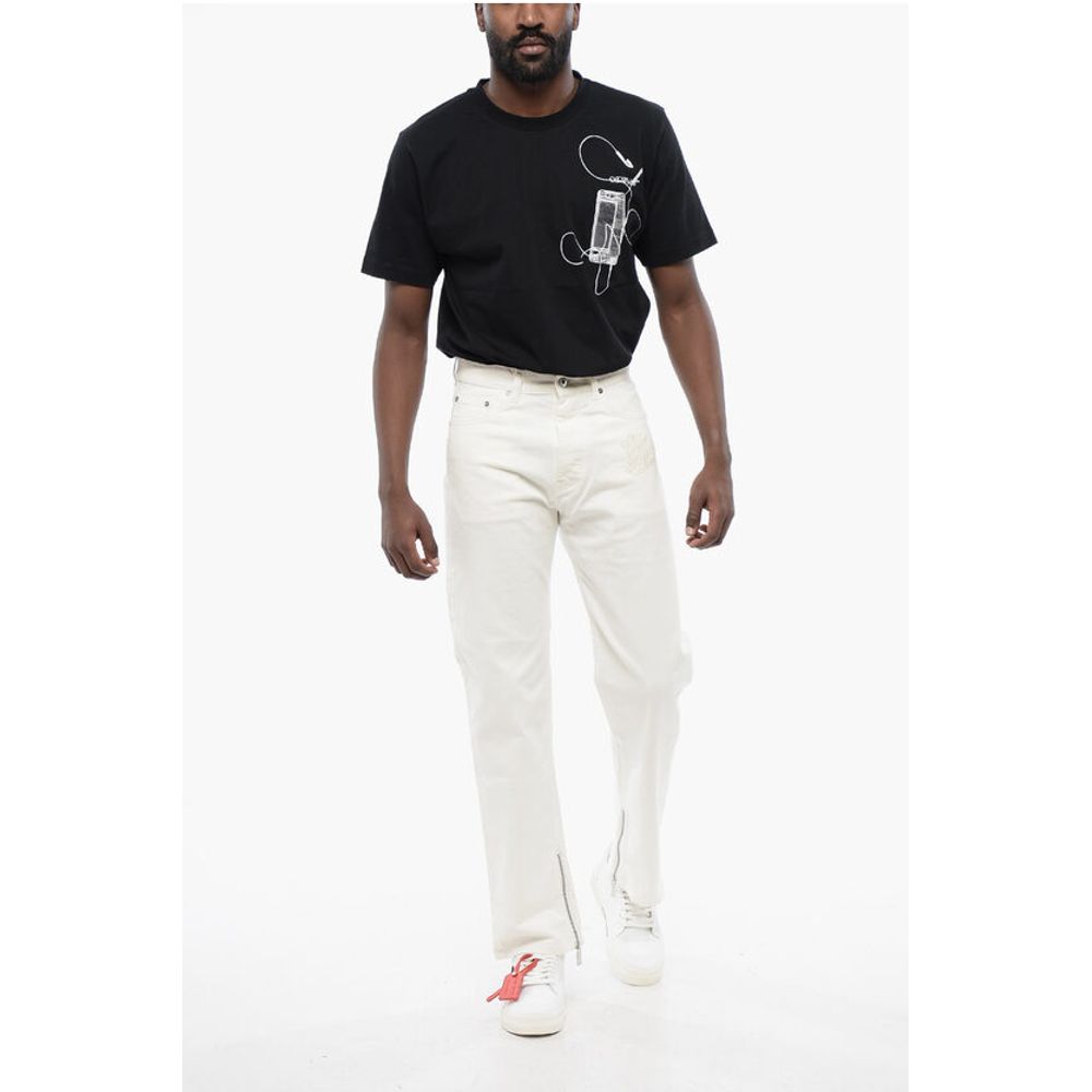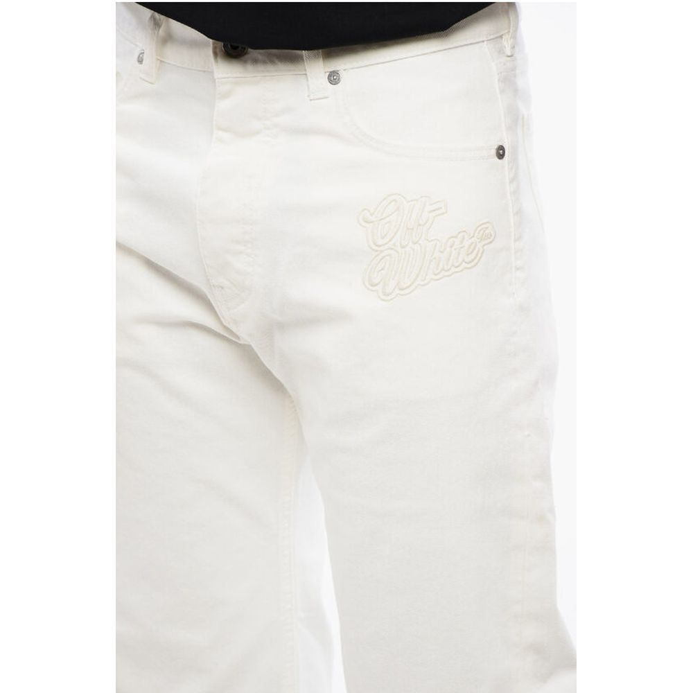 Off-White Stretch Denim Jeans with Ankle Zip 20cm