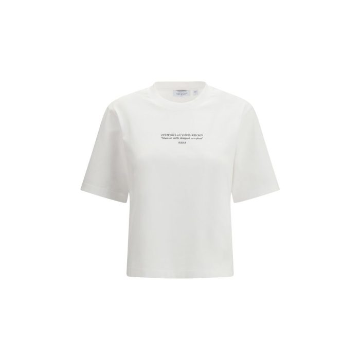 The loose-fit T-shirt by Off-White embodies understated luxury through Virgil Abloh’s unmistakable vision. Crafted from premium heavyweight cotton, it delivers exceptional comfort with a refined, substantial feel. The oversized silhouette, featuring a classic crew neck and short sleeves, reflects a clean, effortless aesthetic designed for elevated everyday wear. The design is intentionally minimal, highlighted only by a subtle black text print on the chest reading “OFF-WHITE c/o VIRGIL ABLOH™ – Made on earth, designed on a plane – ©2013,” affirming its place within the brand’s iconic universe. The back is left unembellished, reinforcing a sleek, modern attitude and a bold sense of individuality.