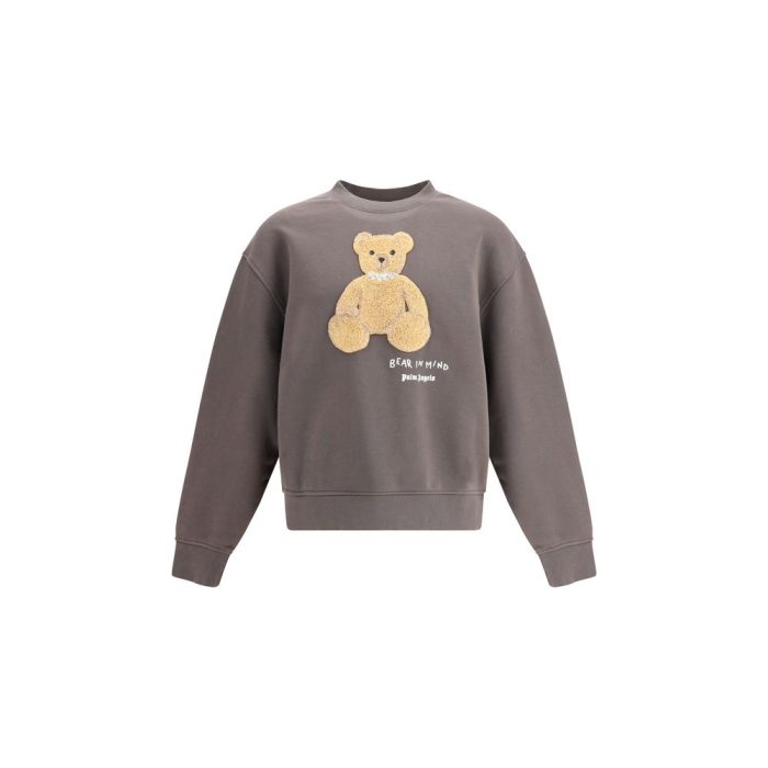 The Bear in Mind Sweatshirt by Palm Angels is a garment that combines casualness and a touch of originality. The ribbed crew neck ensures a comfortable and structured fit, while the embroidery of the iconic bear on the front gives a distinctive and playful character to the design. The bear, a recognizable symbol of the brand, adds a bold style note, making the sweatshirt unique and easily recognizable.