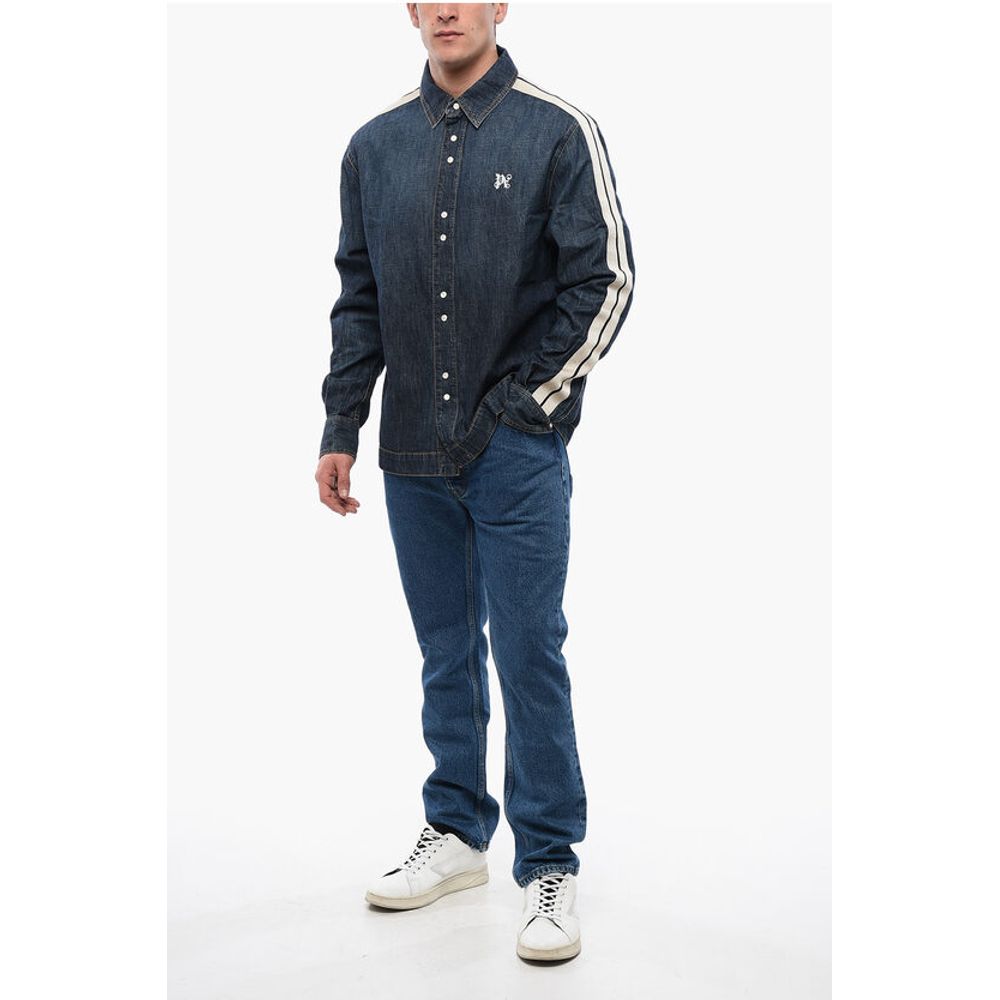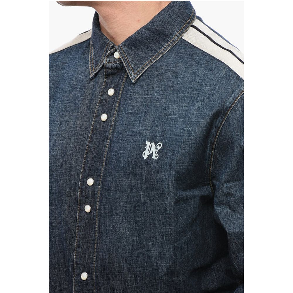 Palm Angels Denim Track Shirt with Tape Detail