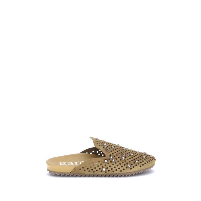 The Raidy Mules by Pedro García combine elegance and originality in a sophisticated design. Made of suede with perforated workmanship, they are enriched with rhinestones applied on the front that give light and character. The zig-zag sole completes the model with a modern and distinctive touch.
