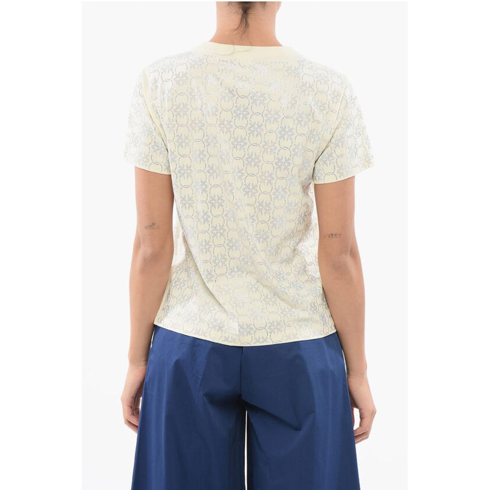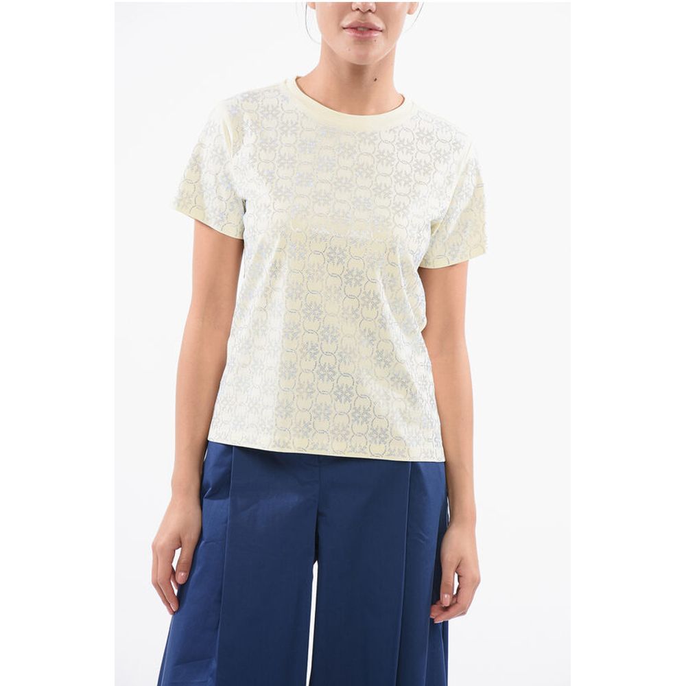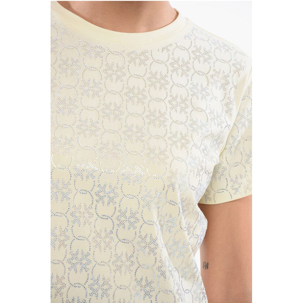 PINKO All-Over Rhinestone Cotton QUENTIN Crew-neck T-shirt