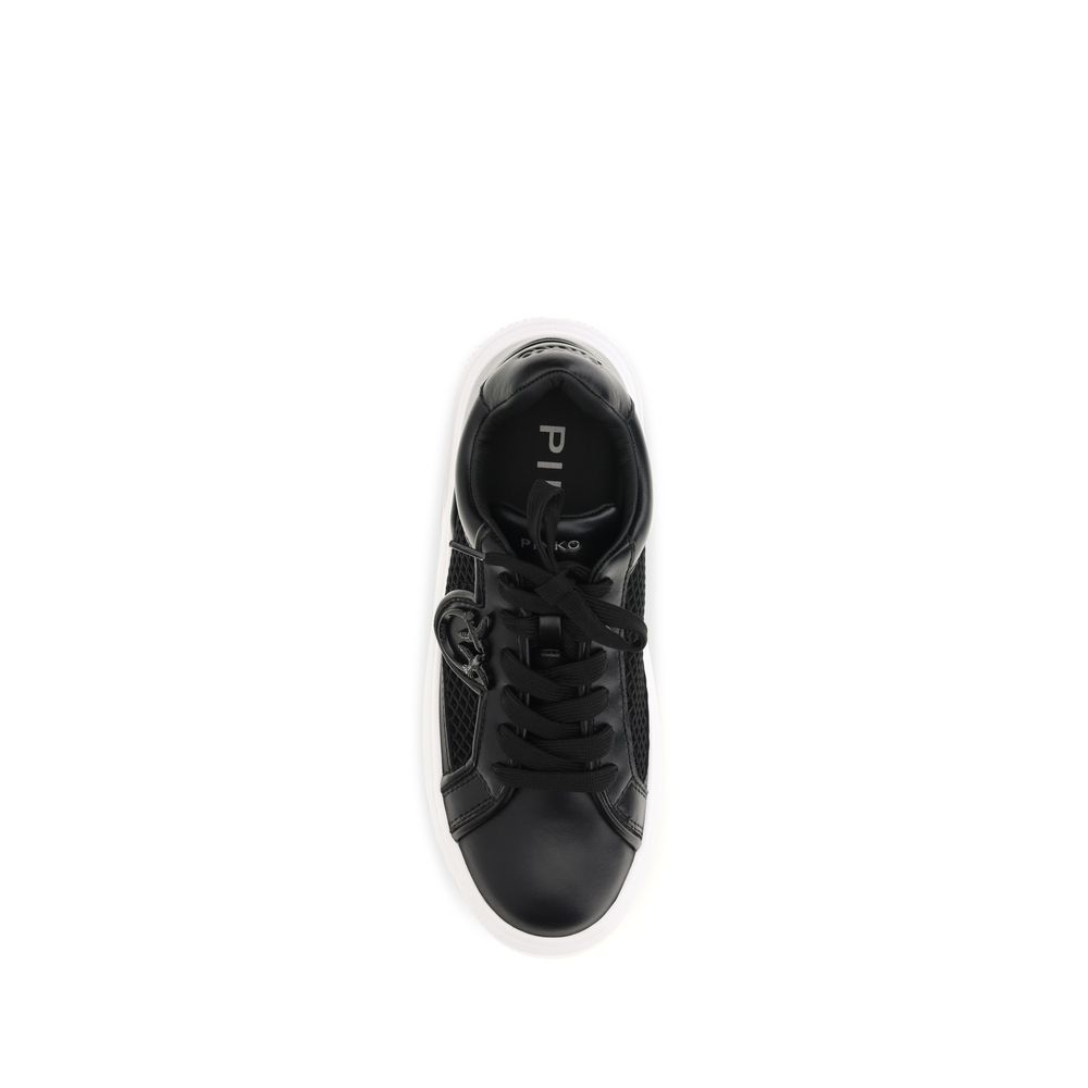 The Yoko leather Sneakers by Pinko with mesh inserts combine comfort and contemporary style. The lace-up closure and rounded toe ensure a secure fit, while the side metal logo adds character to the design. The rubber platform sole with panels completes the model, making it versatile and fashionable.