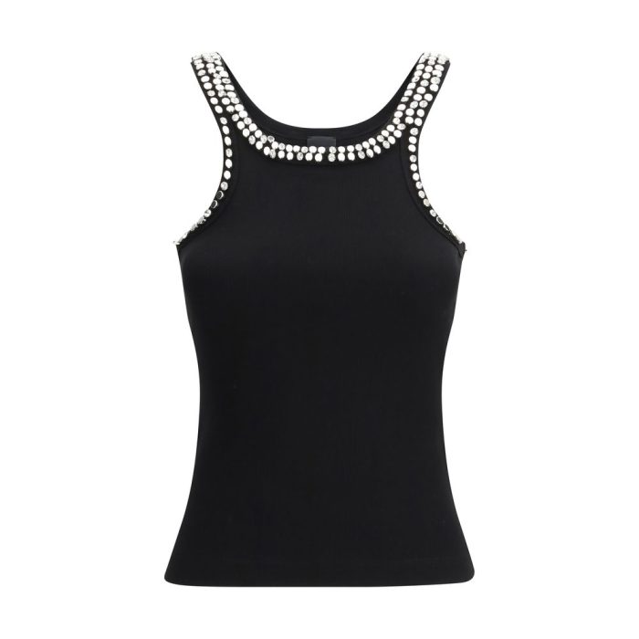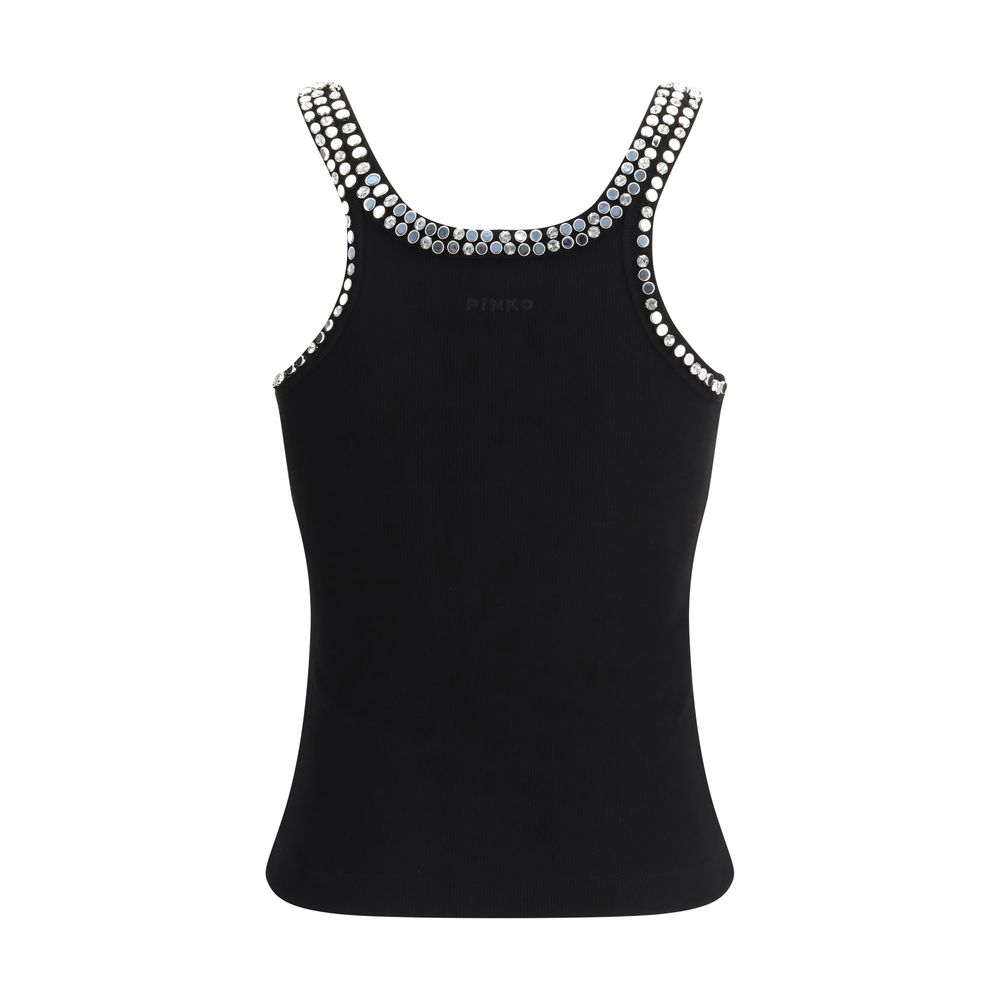 The Coriandoli Top by Pinko brings a refined sense of femininity through its ribbed cotton jersey construction. The deep neckline and straps are embellished with hand-applied crystals, rhinestones and glass details that illuminate the design with crafted brilliance. Ideal as an under-blazer piece for tailored ensembles or paired with statement denim, it adds a sophisticated touch that elevates any outfit with ease.
