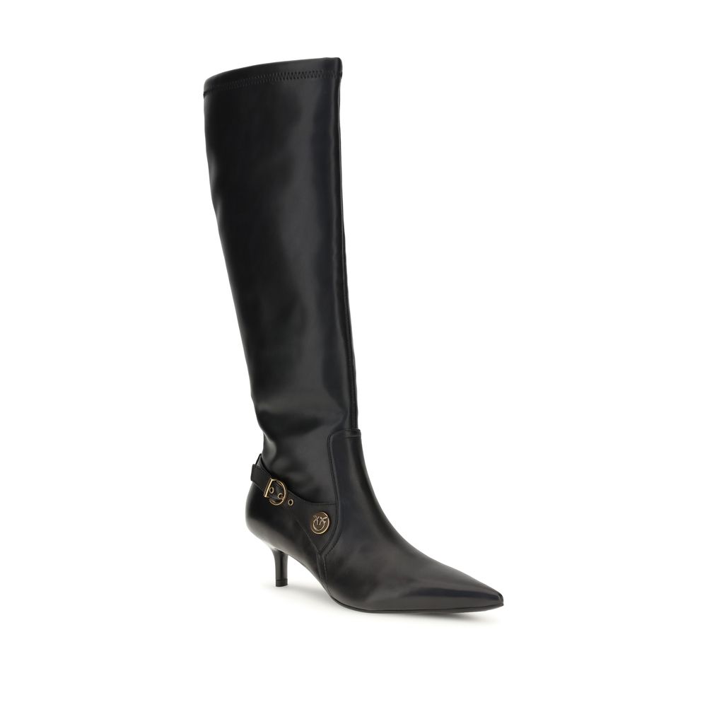 Pinko’s Knee-Length Boots are made of fine soft and smooth nappa leather, with leggings equipped with internal zippers for easy wearing and refined straps with metal loops. Rounded toes and thin, high heels give these styles a feminine yet assertive look. Leather lining, lightly padded leather insoles and soles made of tunit, a synthetic material that mimics the characteristics of leather, complete the shoes.