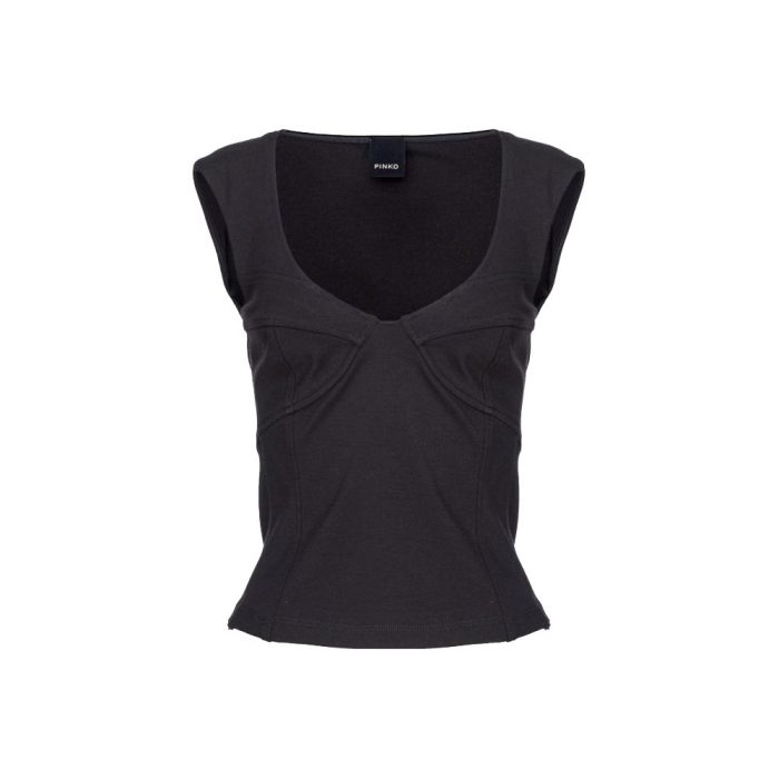 Pinko sleeveless top in viscose blend with wide neckline, zip fastening on the side