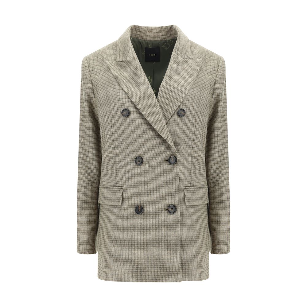 Blazer Jacket by Pinko, double-breasted front closure with contrasting buttons, spear lapels, two side flap welt pockets, one front welt pocket, back slit, structured shoulders, regular fit.