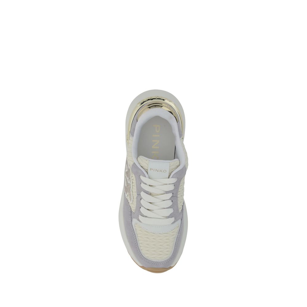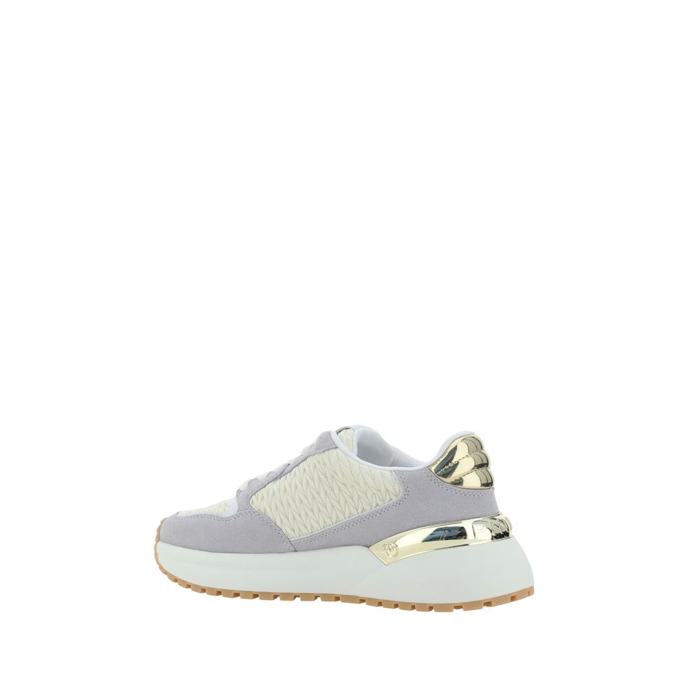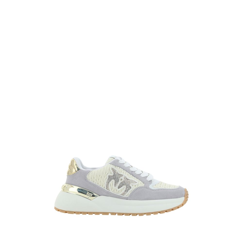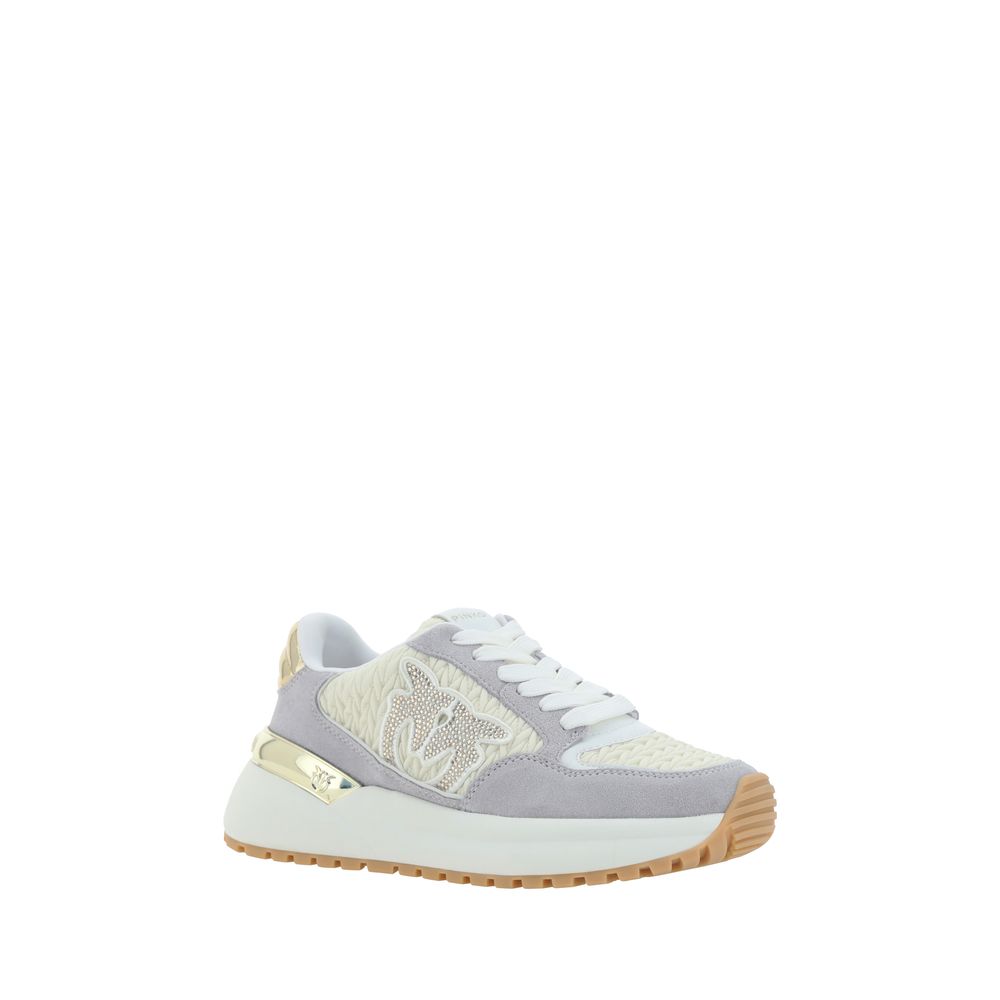 Gem 07 Sneakers by Pinko, round toe, textured non-slip knurled sole, front lace-up closure, suede leather details, contrasting embroidered logo label on front tab, multicolored panel design, iconic Love Birds logo on side panels.
