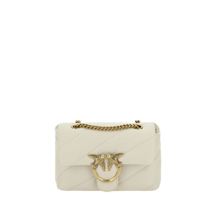 Pinko’s Love Mini Puff leather Shoulder Bag is a stylish and fashionable accessory. The front closure with magnetic button ensures practicality and security, while the iconic Love Birds logo, gold-plated and embossed on the front, adds a touch of luxury. The quilted and padded design gives the bag a rich and sophisticated texture. Inside, there is single interior compartment for excellent organization. The sliding chain strap offers versatility, allowing it to be worn on the shoulder or crossbody. On the back, the brand’s iconic tone-on-tone embroidered monogram adds a discreet and refined detail.