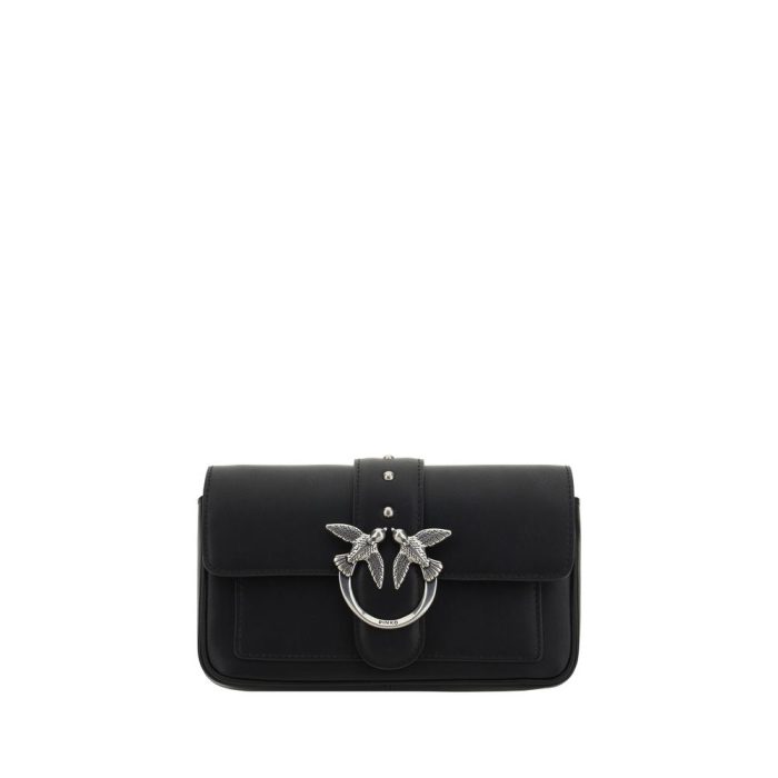 The Calfskin Love One Shoulder Bag by Pinko, interlocking front fastening, adjustable and sliding chain shoulder strap, iconic Love Birds buckle embossed on the front, double internal compartment, internal zipped pocket, flat card pocket, iconic tone-on-tone embroidered brand monogram on the back.