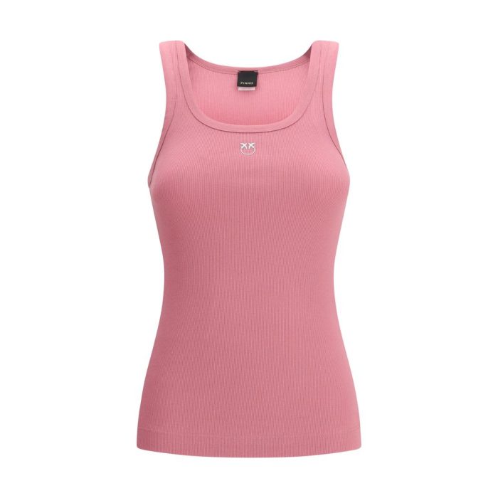 The ribbed tank Top with Love Birds logo by Pinko blends simplicity and character in a finely knitted cotton design with a close fit. The round neckline and ribbed texture enhance the silhouette, while the small centrally placed logo adds a subtle, signature touch. A versatile piece perfect for everyday wear, ideal both for outdoor moments and as a refined layering option under a formal blazer.
