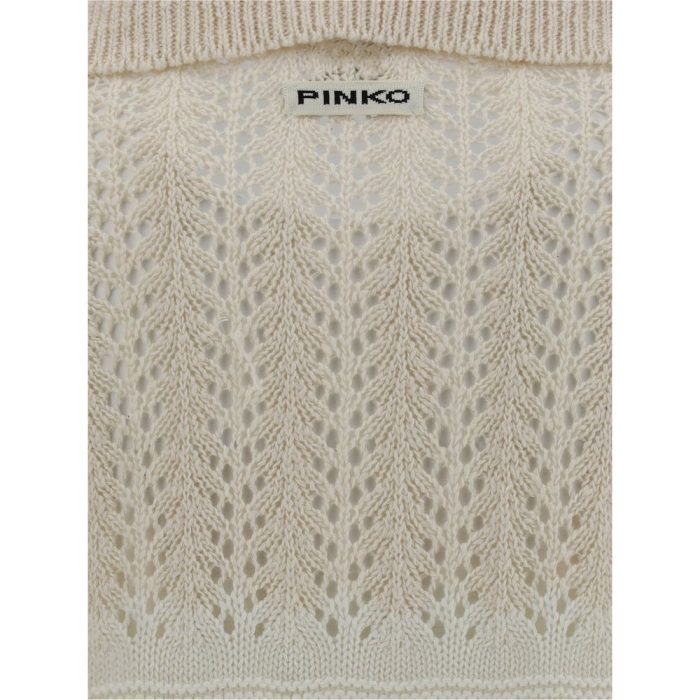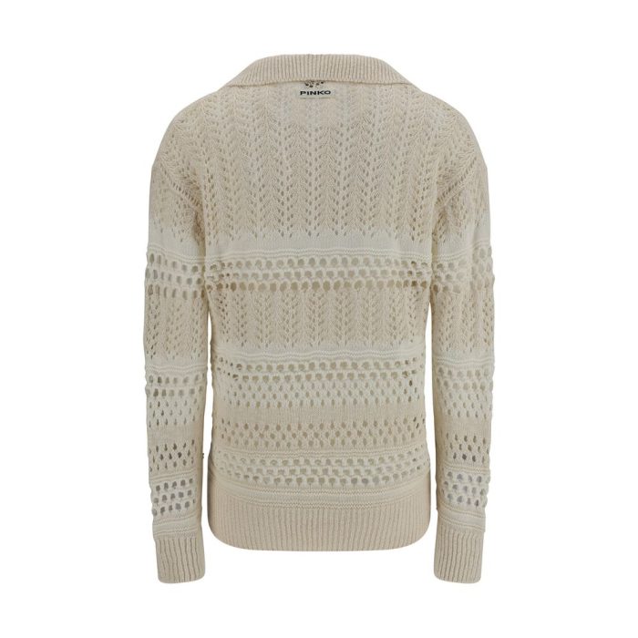 Pinko’s Sweater is a refined and versatile garment that combines comfort and style. The classic ribbed collar and V-neck create an elegant and feminine silhouette, while the ribbed hem and cuffs ensure a comfortable and structured fit. The perforated design adds a light and airy texture to the garment, making it ideal for transitional seasons or for a more sophisticated look during the day.