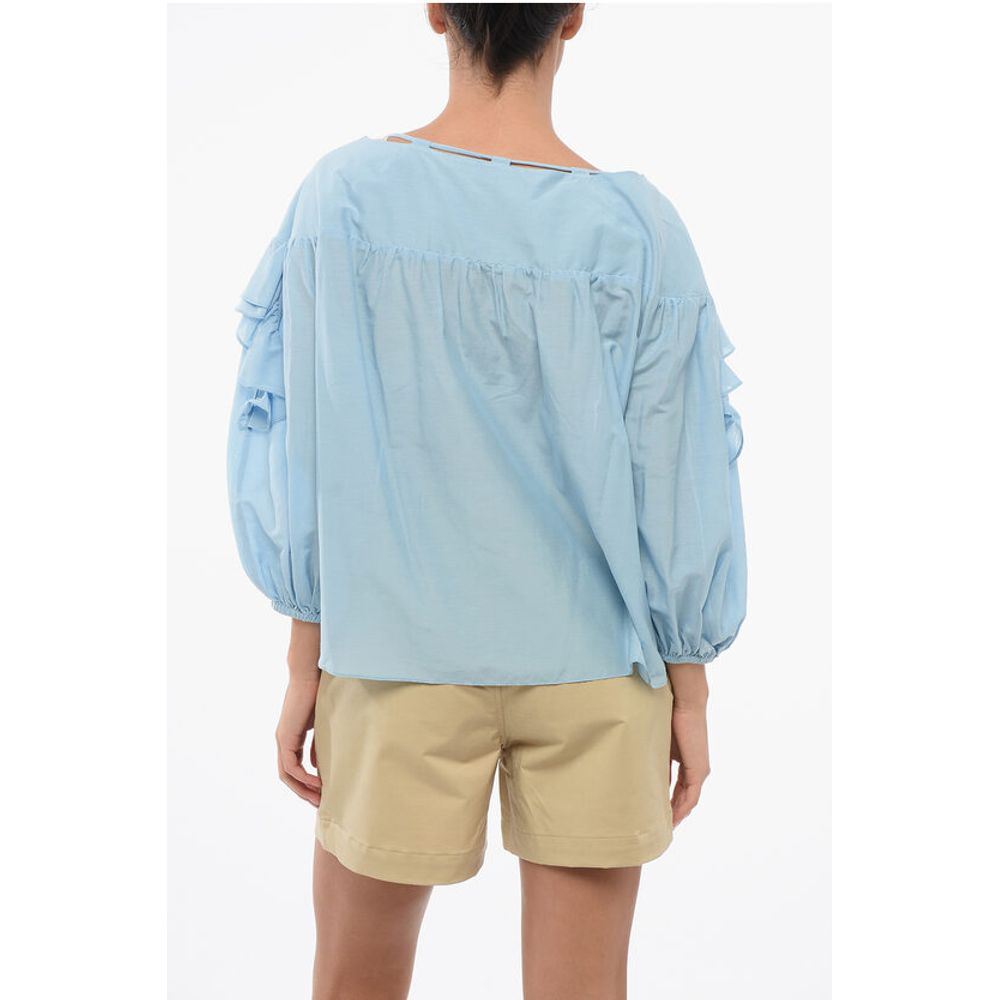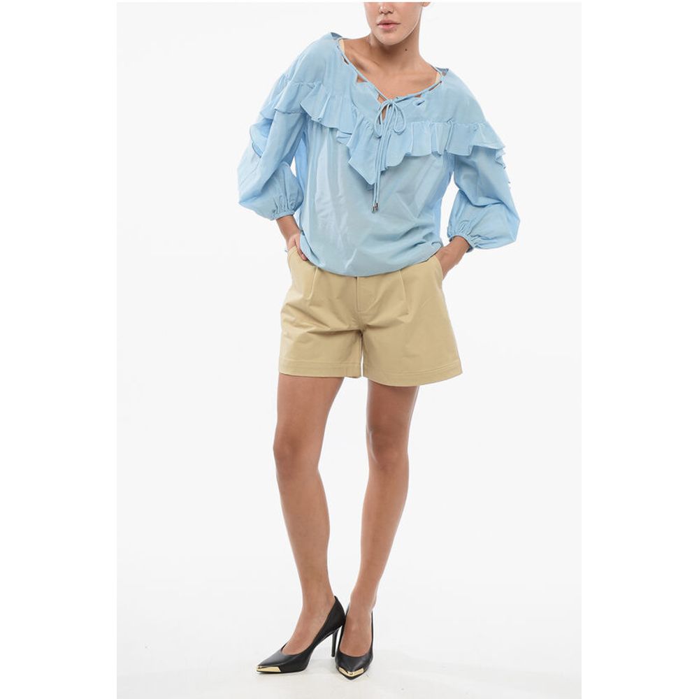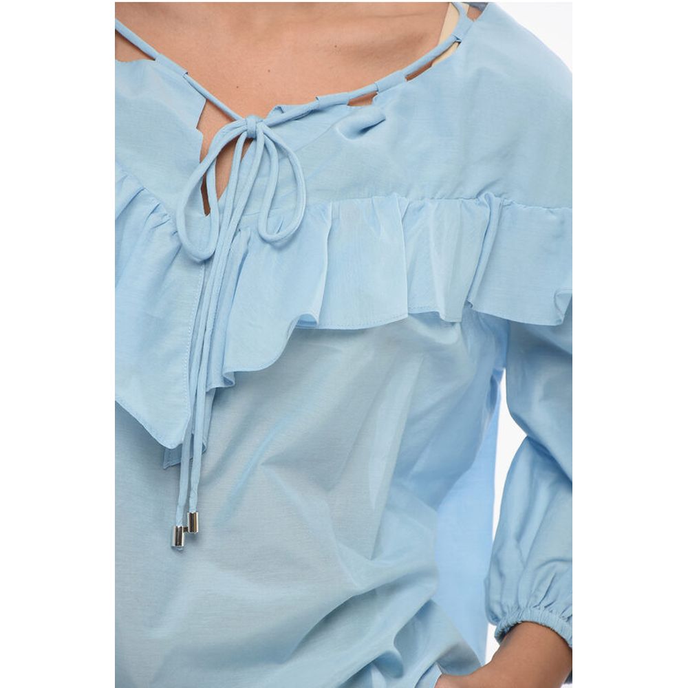 PINKO Solid Color Cotton and Silk BONES Blouse with Ruffles