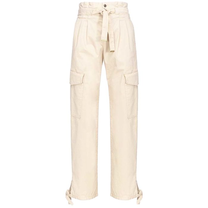 Pinko ivory white coperto trousers, six-pocket design, ribbon drawstring at the ankle and waist.