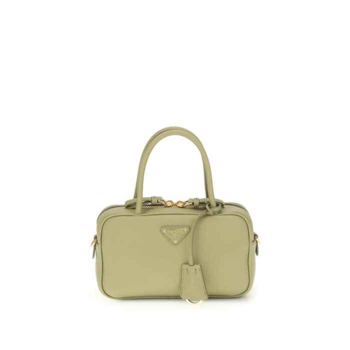 The Handbag by Prada combines elegance and functionality in an iconic design. Featuring two tubular handles and a zip closure, it is embellished with a triangular logo plaque on the front, the brand’s distinctive symbol. The key ring attached to the base of the handles adds a practical and sophisticated detail. The interior features a compartment, perfect for organizing essentials in style.