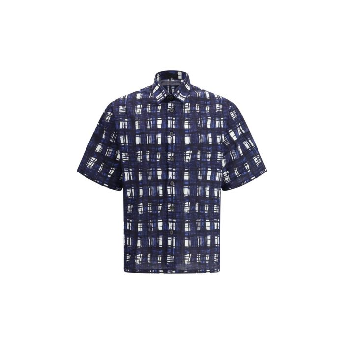 Prada’s Cotton Shirt is an elegant garment with timeless style. It is a short-sleeved model, ideal for the warm season, combining comfort and sophistication. The front button closure ensures a practical and versatile fit. The fabric features a Madras check pattern, which gives a touch of color and freshness to the design, while maintaining a sophisticated look suitable for different occasions.