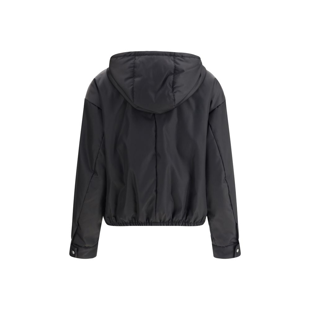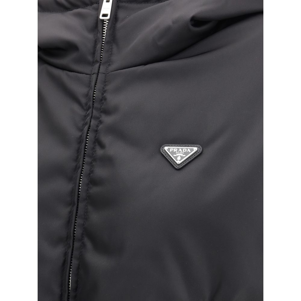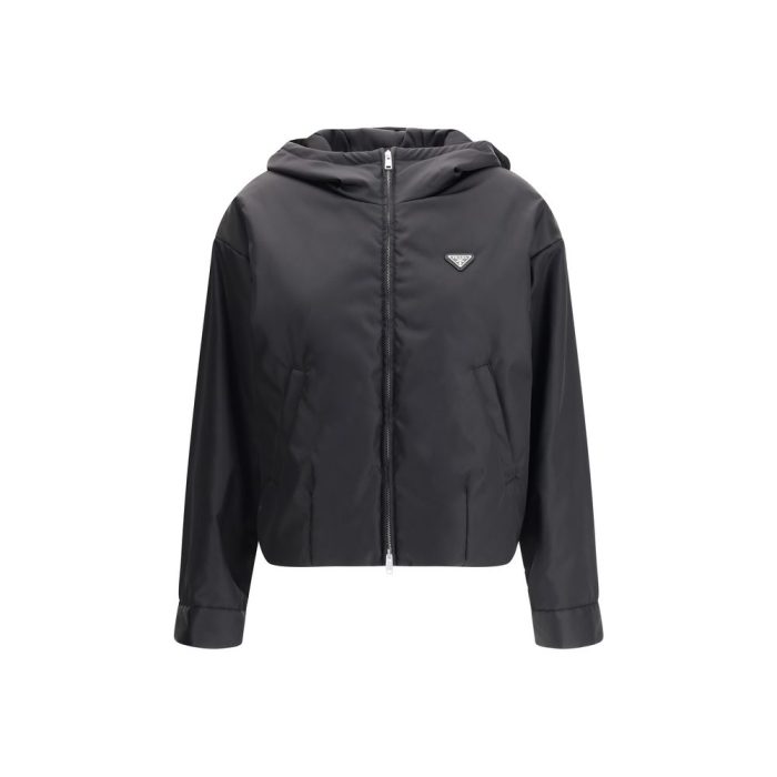Prada’s re-nylon Jacket is a perfect example of contemporary style and sustainable functionality. The model features an adjustable drawstring hood for a customized fit and a front closure with a double-slider zipper for convenience and comfort. Completing the design are two front welt pockets, ideal for storing essentials, and the iconic triangular plaque on the front, a distinctive symbol of the brand. A versatile jacket with a modern character, perfect for those looking for a technical yet refined garment.