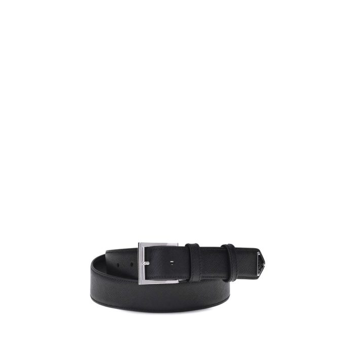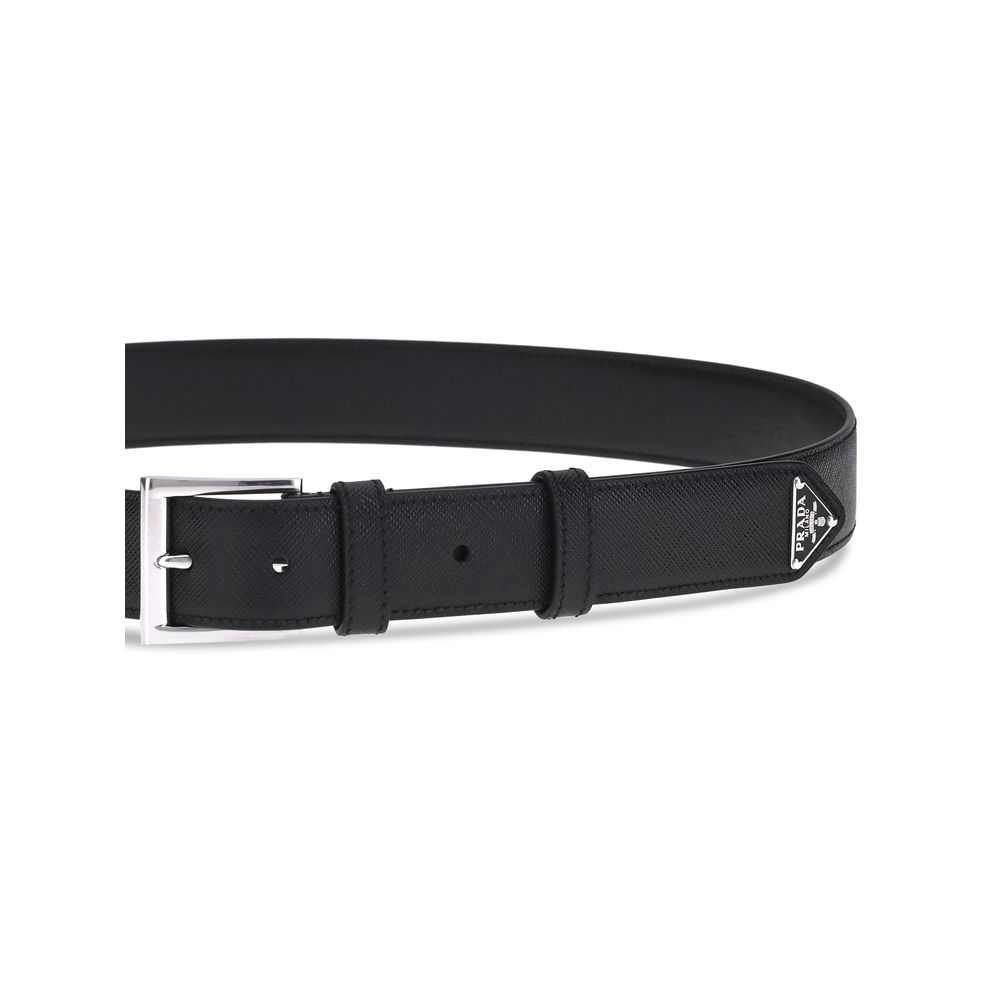 The Saffiano Belt by Prada embodies a sober and contemporary elegance. Crafted from Saffiano leather, it stands out for its essential and refined design, embellished with the enameled metal triangle logo, the iconic symbol of the maison. Completed with a metal buckle, it is the ideal accessory to add a distinctive touch to formal or casual looks.