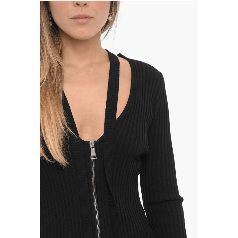 Ribbed Bodycon Dress with Zip Closure