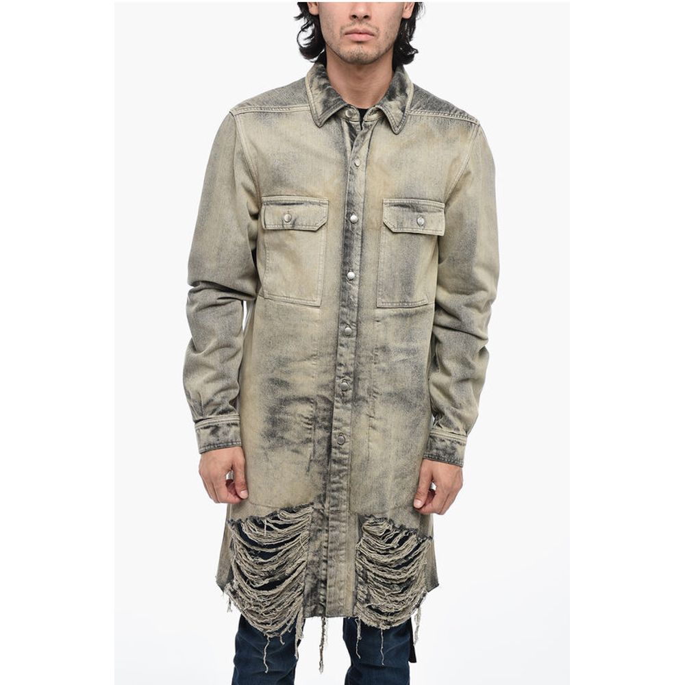 Rick Owens Distressed Denim Overshirt with Fringed Hem